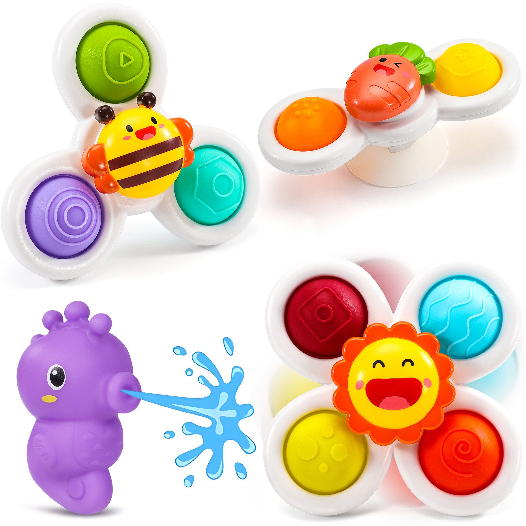 Entdecken Sie das charmante Saugnapf-Kreisel Spielzeug, ein hervorragendes Lernspielzeug für die Früherziehung von Babys und Kleinkinder im Alter von 1-3 Jahren. Mit drei niedlichen Cartoon-Formen – Sonne, Biene und Karotte – und neun drückbaren Silikonblättern in individuellen Farben, Zahlen (1-9) und Mustern, bietet dieses Spielzeug eine faszinierende sensorische Erfahrung. Der Spinner kann beim Drehen Geräusche machen, was die Aufmerksamkeit des Babys auf sich zieht und das Weinen vorübergehend stoppen kann.