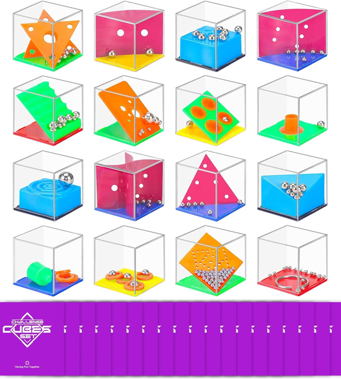16 Pack MINI BRAIN TEASER PUZZLE CUBES:16 einzigartige Puzzlewürfel in fröhlichen Farben. Jeder Mini-Würfel misst 3,8 cm und ist für alle Altersgruppen geeignet. In einer beautiful display box mit verschiedenen herausfordernden Puzzle-Spielen verpackt.