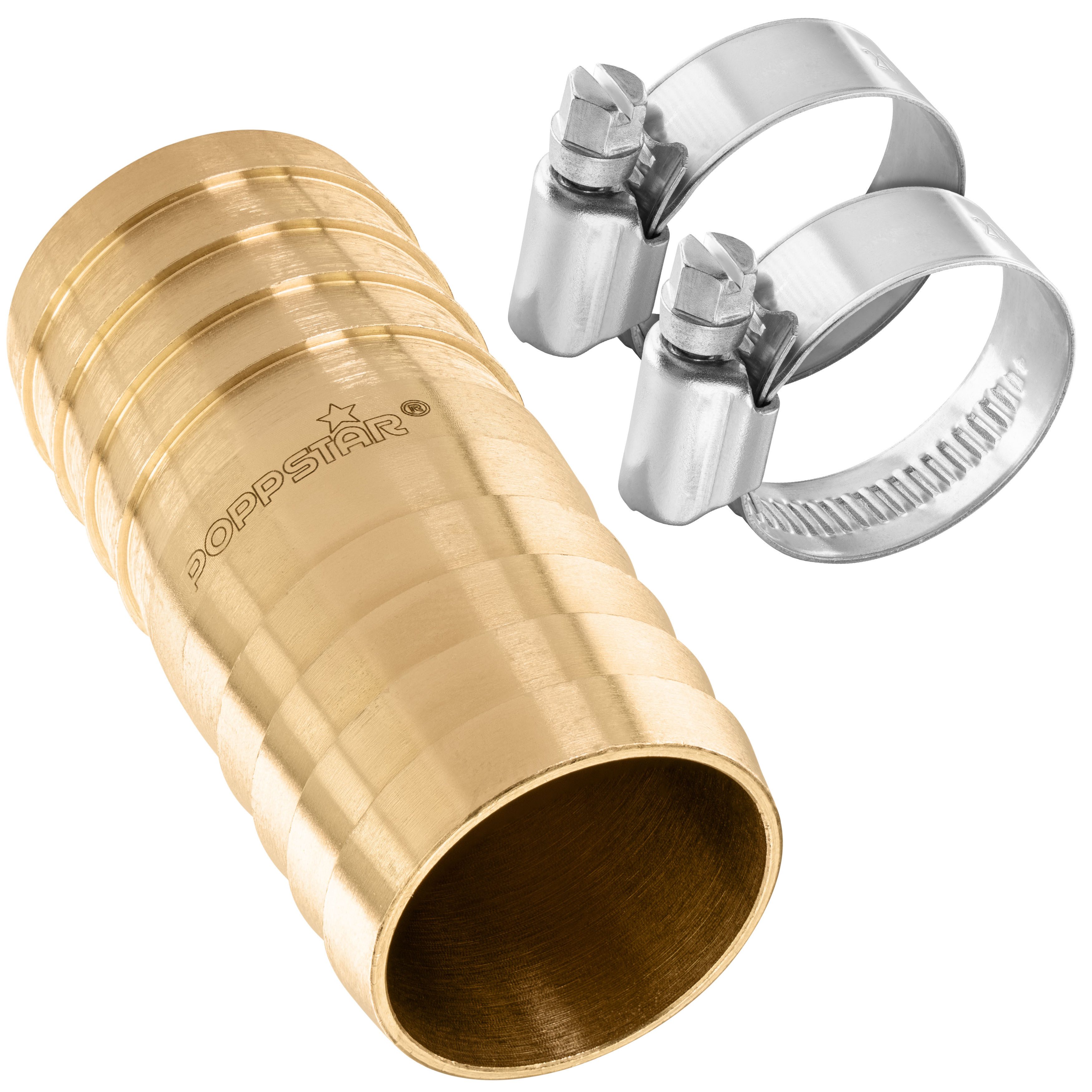 Poppstar Schlauchverbinder Messing für Schlauch-Verbindungen und zum Schlauch reparieren Der äußerst stabile Schlauch-Verbinder von Poppstar ist die ideale Lösung, um ein Schlauchstück mit einem anderen zu verbinden. Die im Lieferumfang enthaltenen Edelstahl-Schellen sorgen dabei zusätzlich für eine sichere Fixierung. Die Schlauchleitung in der Waschküche, im Garten oder im Gewächshaus hat eine kaputte Stelle? Mit dem Poppstar Gartenschlauch-Reparaturset können durch Spaten oder Hacke verletzte Schläuche wieder abgedichtet werden. Einfach den Schlauch zerschneiden und wieder zusammenfügen, schon ist er wieder einsatzbereit! Auch wenn eine alte Kunststoffkupplung kaputt ist und stattdessen eine dauerhafte, langlebigere Verbindung gewünscht wird, ist der Poppstar Schlauchverbinder die perfekte Lösung. Technische Daten Tülle Material: Messing blank CW617N Temperaturbereich -40 - 120 °C Maximaldruck: 10 bar Trinkwasser-geeignet: ja Durchmesser: 25 mm Длина: 55 mm Gewicht: 46 g Technische Daten Schlauchschellen Material: Edelstahl Spannbereich: Ø20 - 32 mm Bandbreite: 9 mm Einzelgewicht: 19 g