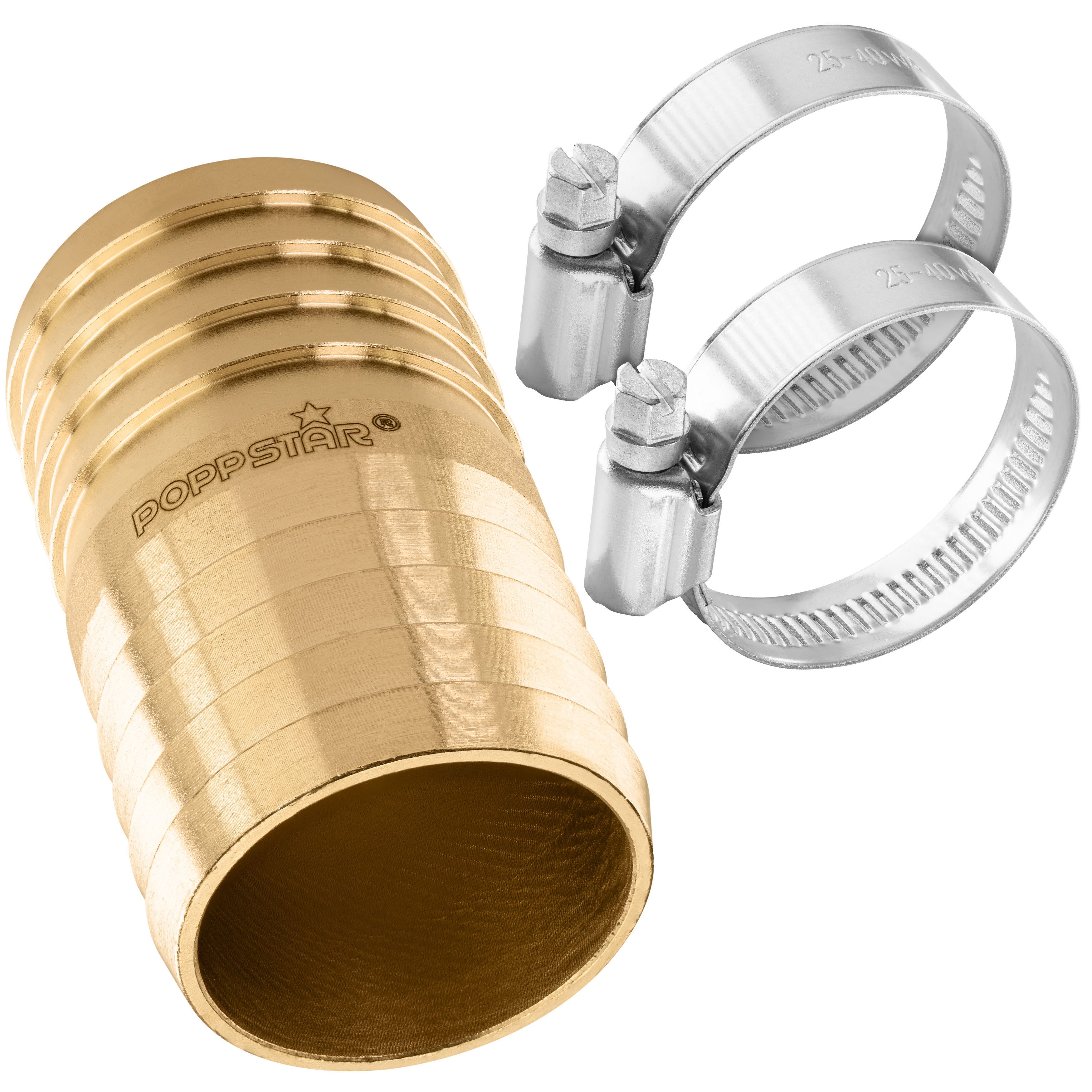 Poppstar Schlauchverbinder Messing für Schlauch-Verbindungen und zum Schlauch reparieren Der äußerst stabile Schlauch-Verbinder von Poppstar ist die ideale Lösung, um ein Schlauchstück mit einem anderen zu verbinden. Die im Lieferumfang enthaltenen Edelstahl-Schellen sorgen dabei zusätzlich für eine sichere Fixierung. Die Schlauchleitung in der Waschküche, im Garten oder im Gewächshaus hat eine kaputte Stelle? Mit dem Poppstar Gartenschlauch-Reparaturset können durch Spaten oder Hacke verletzte Schläuche wieder abgedichtet werden. Einfach den Schlauch zerschneiden und wieder zusammenfügen, schon ist er wieder einsatzbereit! Auch wenn eine alte Kunststoffkupplung kaputt ist und stattdessen eine dauerhafte, langlebigere Verbindung gewünscht wird, ist der Poppstar Schlauchverbinder die perfekte Lösung. Technische Daten Tülle Material: Messing blank CW617N Temperaturbereich -40 - 120 °C Maximaldruck: 10 bar Trinkwasser-geeignet: ja Durchmesser: 32 mm Длина: 55 mm Gewicht: 86 g Technische Daten Schlauchschellen Material: Edelstahl Spannbereich: Ø25 - 40 mm Bandbreite: 9 mm Einzelgewicht: 20 g