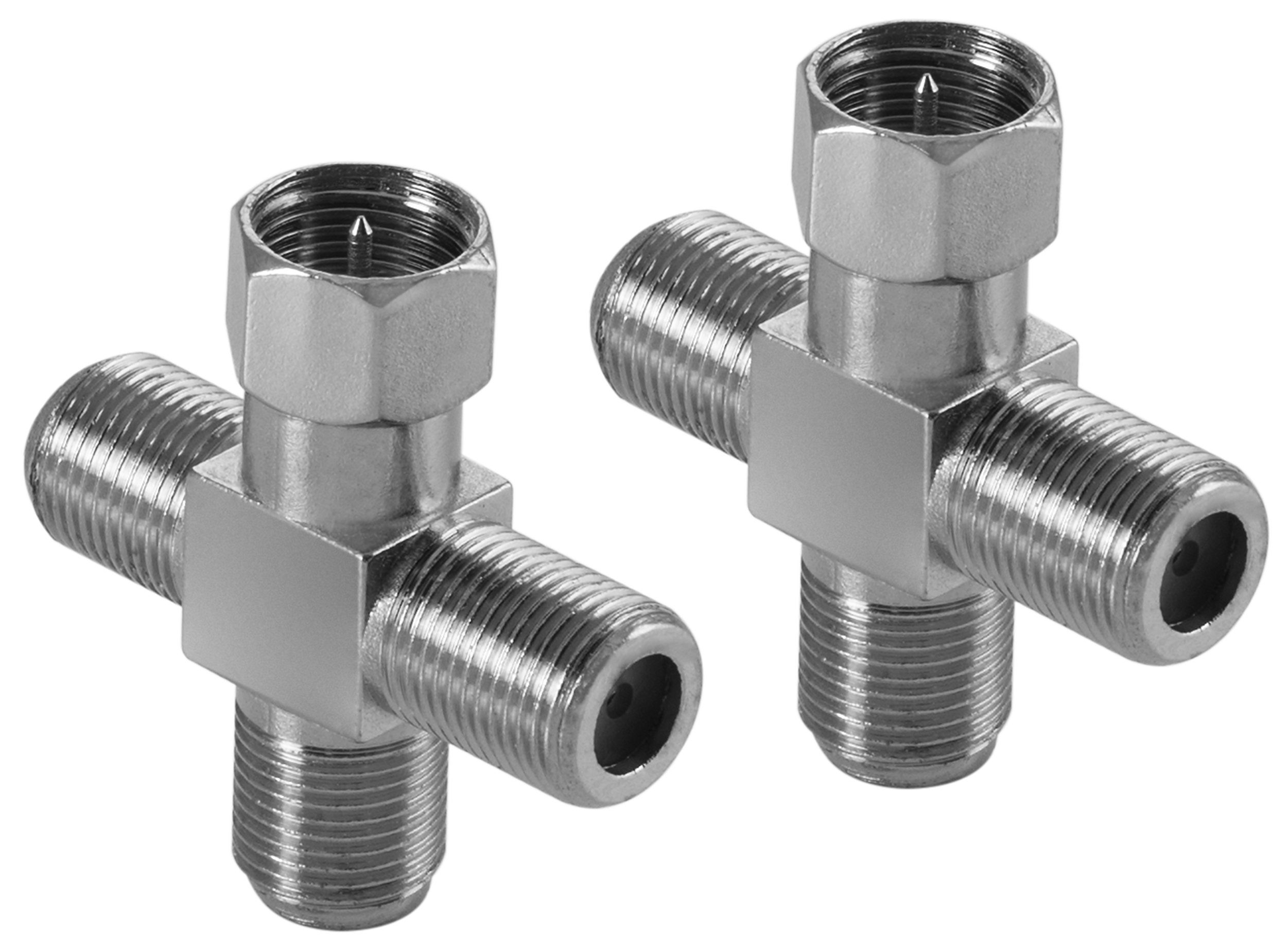 Der Poppstar SAT Koaxial Adapter erlaubt es Ihnen drei Endgeräte, wie Fernseher oder SAT Receiver über einen Anschluss zu betreiben. Sie können somit das Signal von einem Anschluss an drei Geräte zur gleichen Zeit weitergeben.