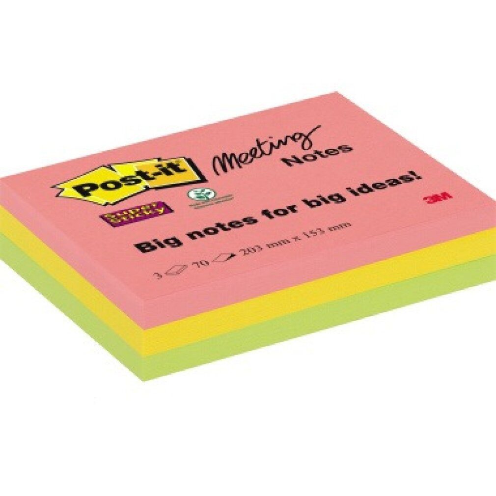 Post-it Haftnotiz Meeting Notes 8670-3SS H) 1 x neongrün 1 x neonpink 1 xDank der Super Sticky Formel haften die Post-it® Super Sticky Meeting Notes sicher · auf praktisch allen Oberflächen.