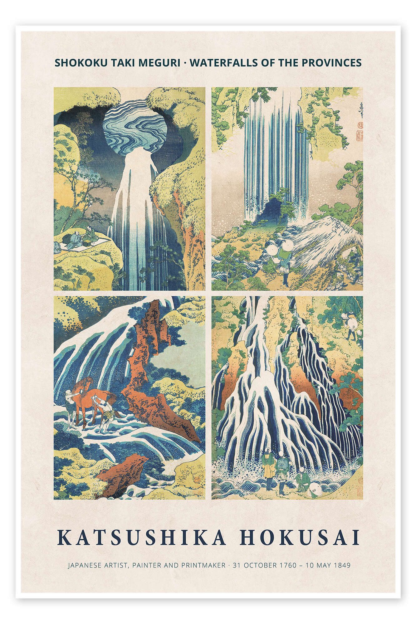 Das Poster „Shokoku Taki Meguri – Waterfalls of the Provinces“ (731129) aus dem Меню des Kunstverlags Posterlounge wird Sie mit intensiven Farben und hervorragender Kunstdruck-Qualität begeistern. Der hochwertige, leicht glänzende Druck auf kräftigem Premiumpapier (250 g/m²) macht das Bild von Katsushika Hokusai zu einem echten Hingucker für Ihr Zuhause. Durch den 3 mm breiten weißen Rand, der in allen Formaten inbegriffen ist, wird das Motiv hervorgehoben und wirkt besonders edel.