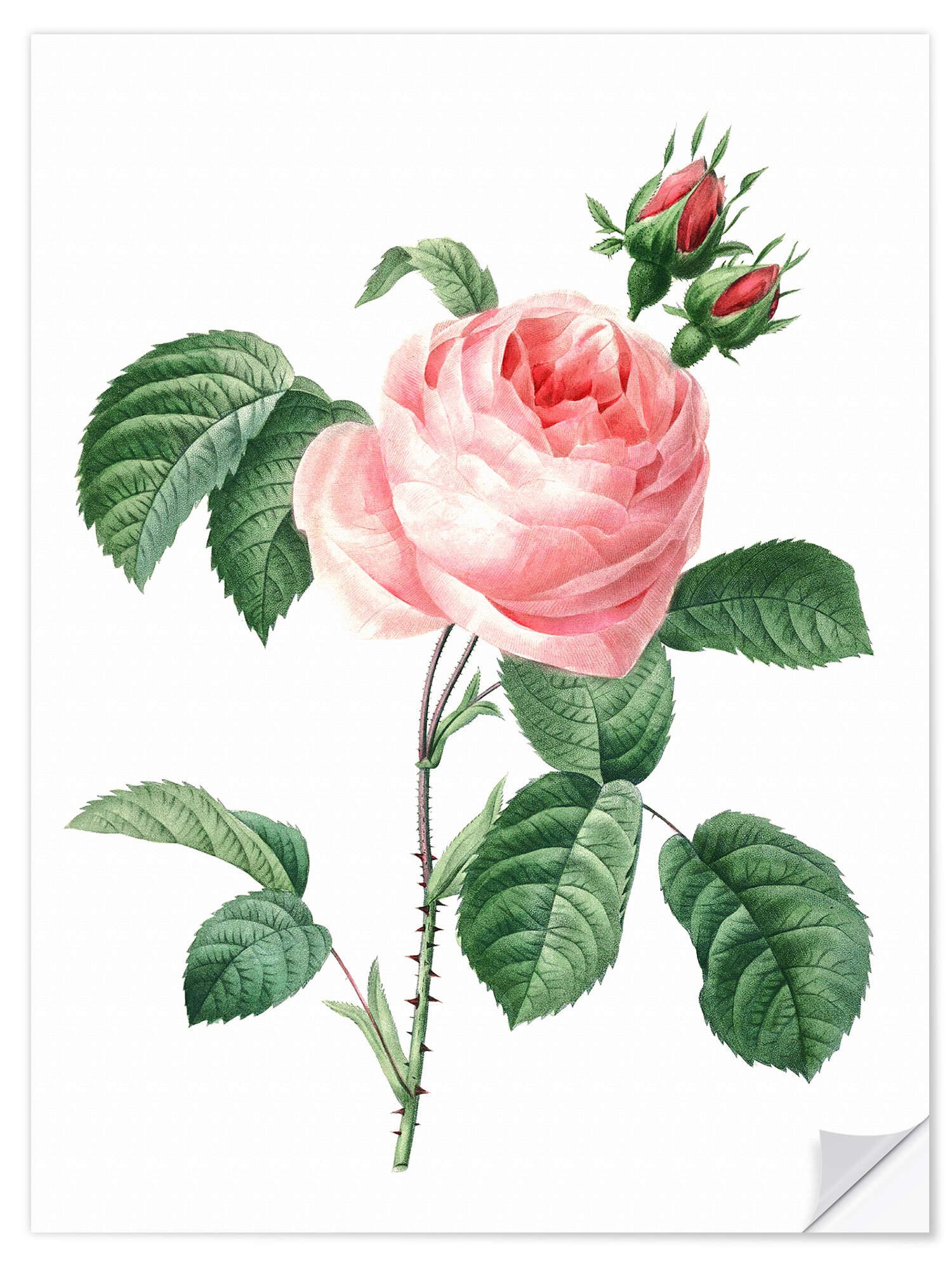 Ihr Wandsticker „Rosa“ (402210) von Pierre Joseph Redouté wird eigens für Sie in der hauseigenen Kunstdruckerei des Leipziger Kunstverlages Posterlounge hergestellt. Mit diesem farbenprächtigen und hochauflösenden Druck auf selbstklebender Folie (170 g/m²) können Sie den Look Ihrer Einrichtung in Nullkommanichts verändern, ohne zu Bohren oder zu Hämmern.