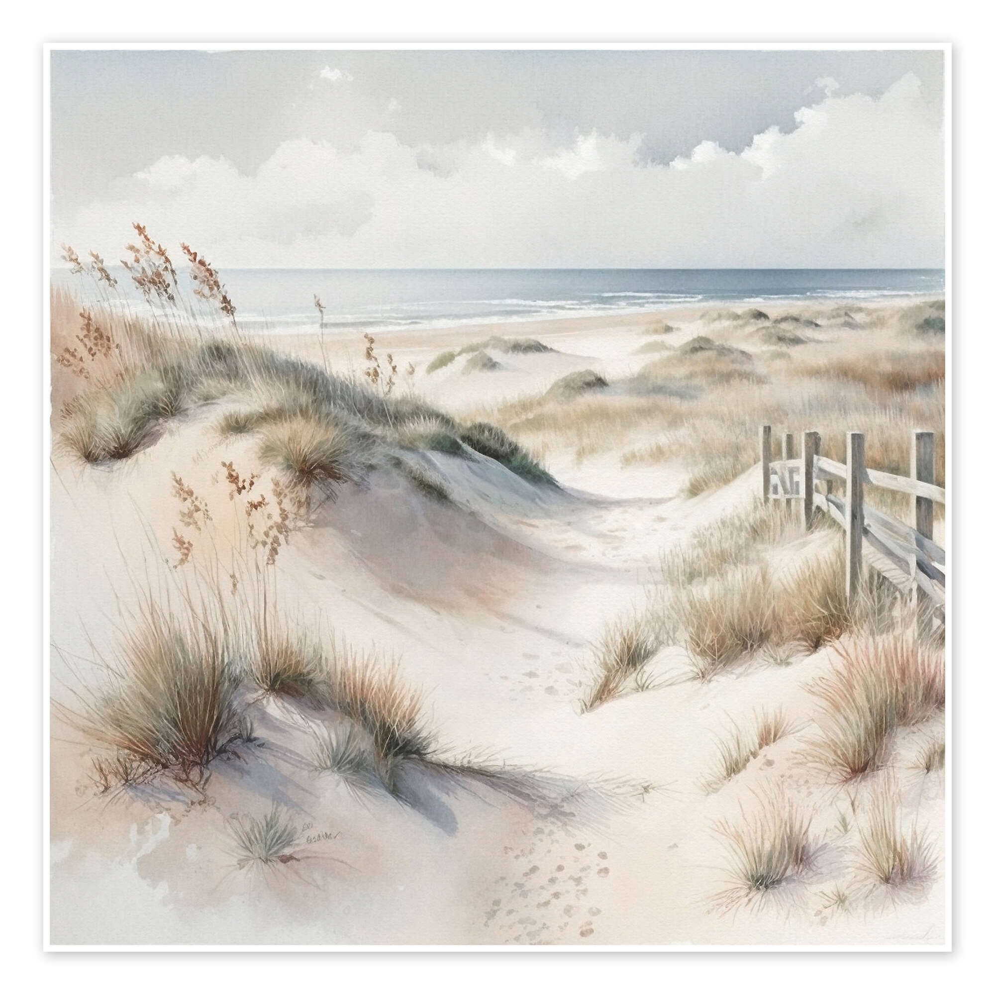 Das Poster „Stranddüne“ (756121) aus dem Меню des Kunstverlags Posterlounge wird Sie mit intensiven Farben und hervorragender Kunstdruck-Qualität begeistern. Der hochwertige, leicht glänzende Druck auf kräftigem Premiumpapier (250 g/m²) macht das Bild von Willow Studio zu einem echten Hingucker für Ihr Zuhause. Durch den 3 mm breiten weißen Rand, der in allen Formaten inbegriffen ist, wird das Motiv hervorgehoben und wirkt besonders edel.