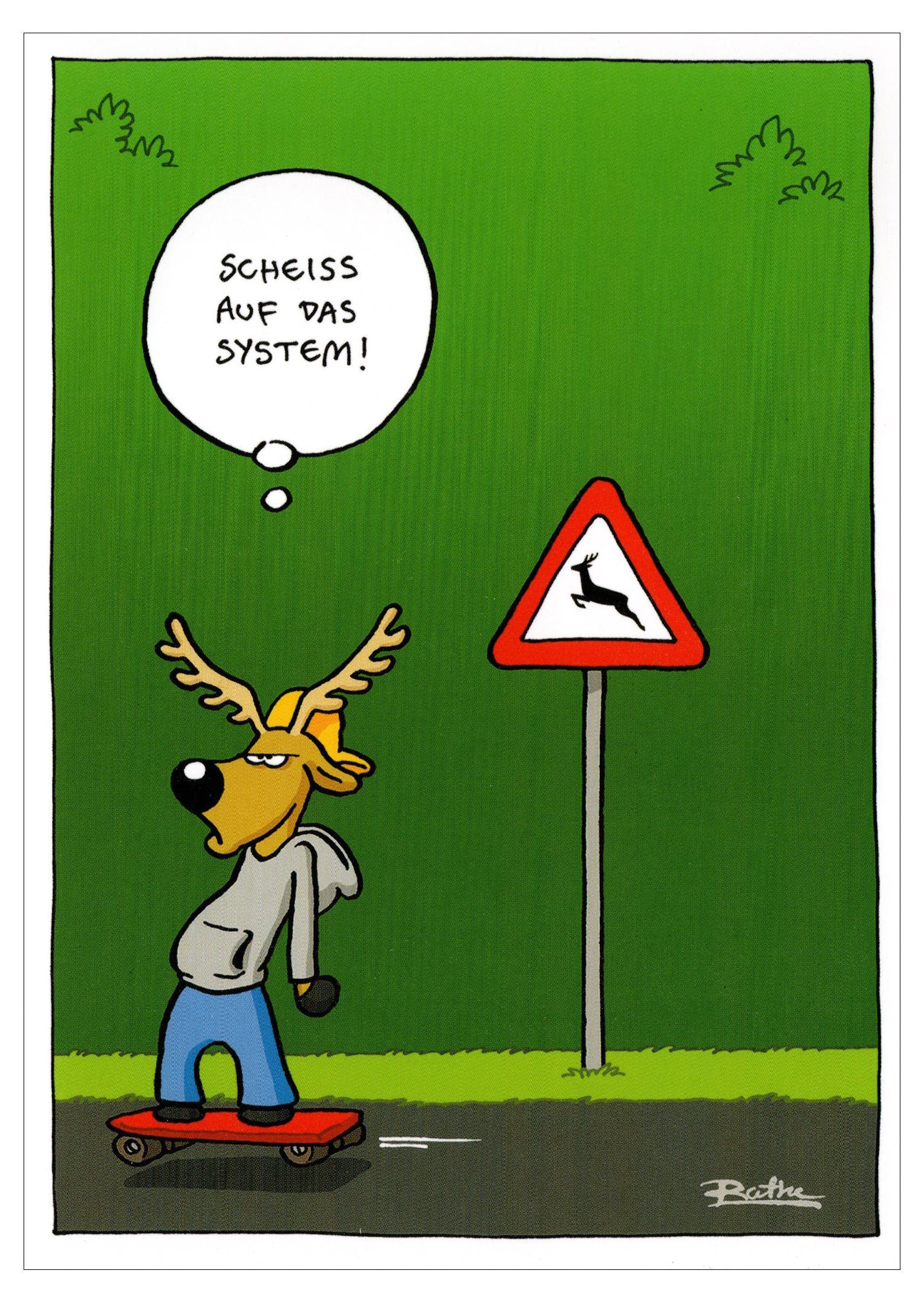 Postkarte Ralph Ruthe "Scheiss auf das System!"