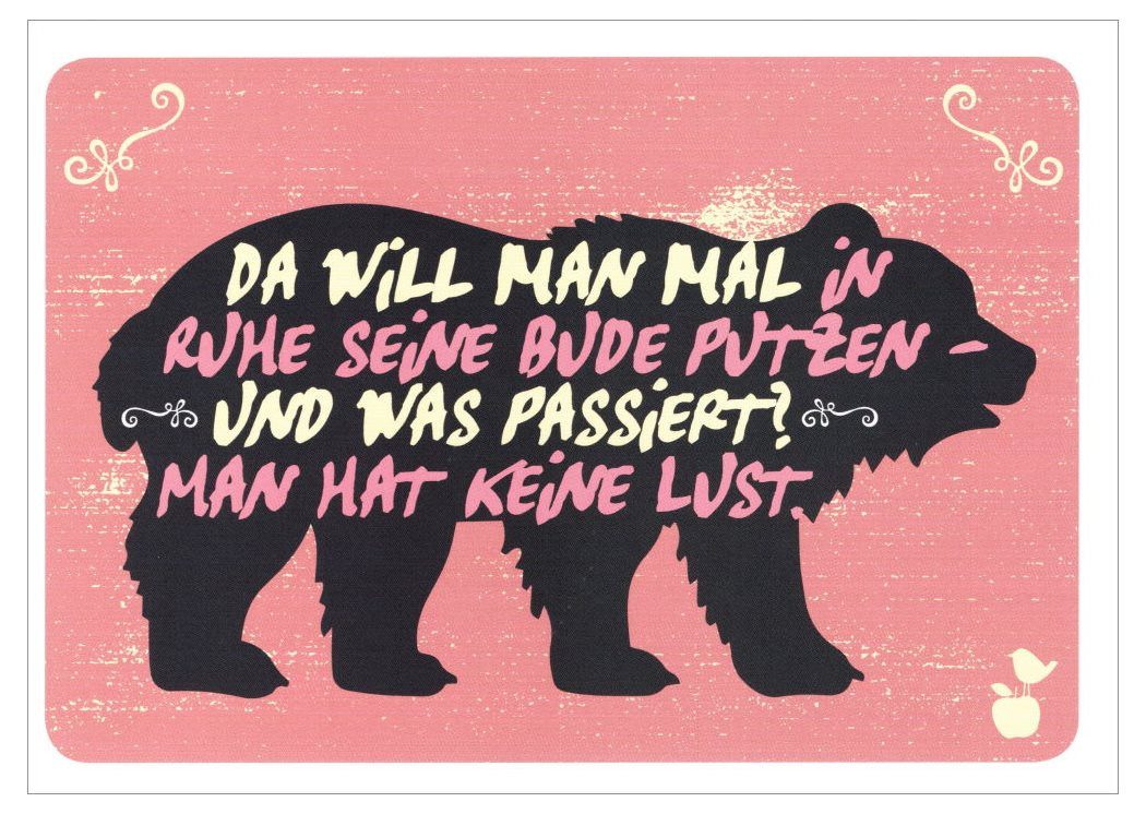 Postkarte "Da will man mal in Ruhe seine Bude putzen - und ..."