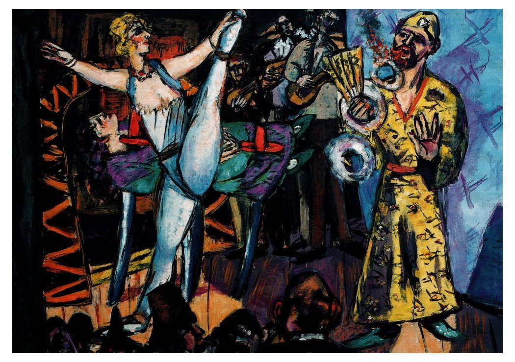 Kunstkarte Max Beckmann "Großes Varieté mit Zauberer und Tänzerin"