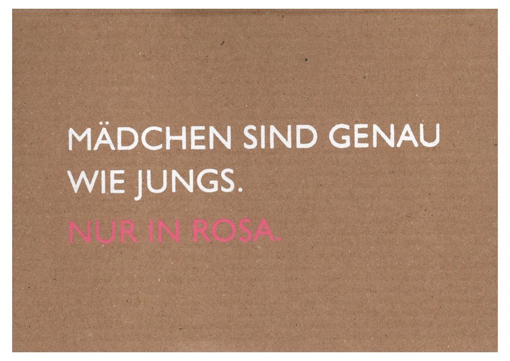 Postkarte aus Wellpappe "Mädchen sind genau wie Jungs. Nur in rosa."