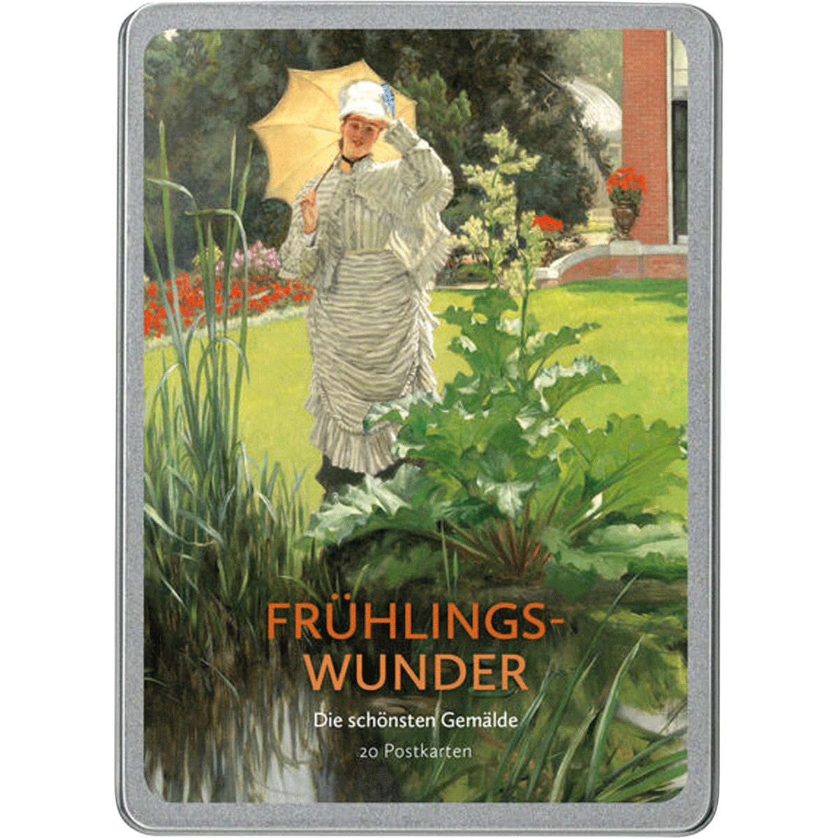 Jedes Jahr vollzieht sich in der Natur ein Wunder, dass uns Staunen lässt. Überraschend tauchen bunte Punkte in Form von Krokussen und Osterglocken auf den Wiesen auf und streiten sich mit ihrer Farbenpracht um unsere Aufmerksamkeit. Die Kunstgeschichte bietet eine reiche Auswahl an stimmungsvollen Gemälden von der glücklichsten Jahreszeit. In dieser Zusammenstellung mit 20 Karten liegen die schönsten Beispiele vereint in einer schmuckvollen Blechdose.