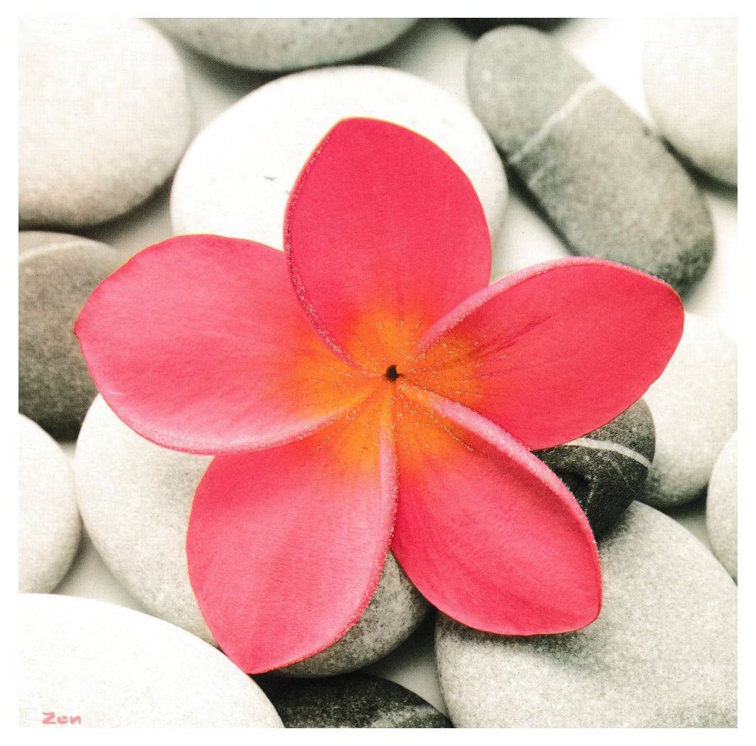 Quadratische Postkarte "Rosa Blüte auf Steinen"