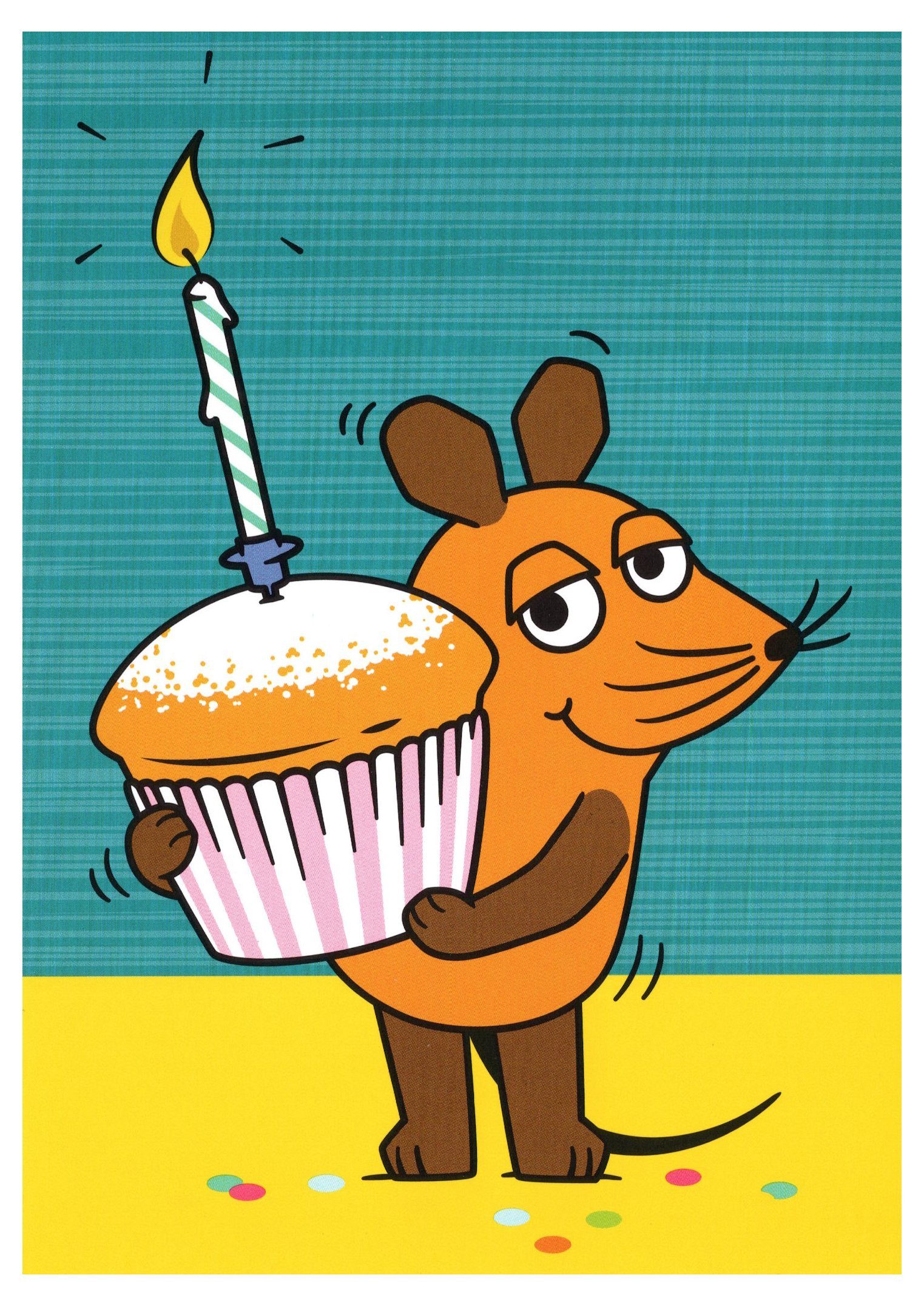 Postkarte "Sendung mit der Maus: Die Maus mit Geburtstagsmuffin"