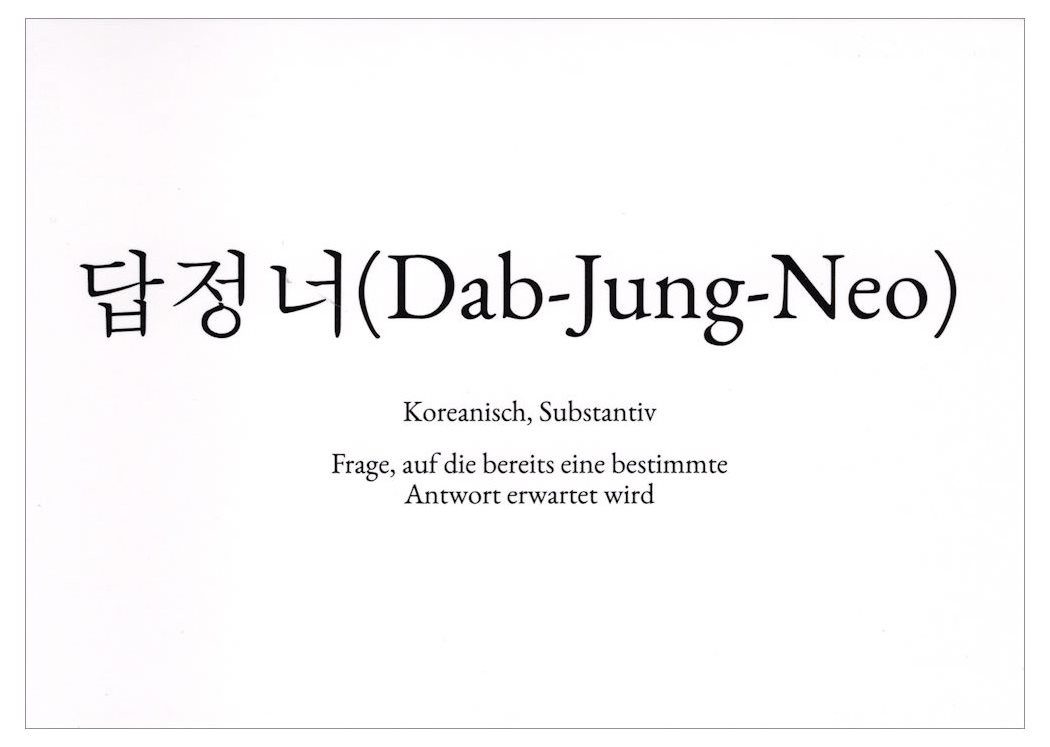 Wortschatz-Postkarte "Dab-Jung-Neo"Koreanisch, Substantiv