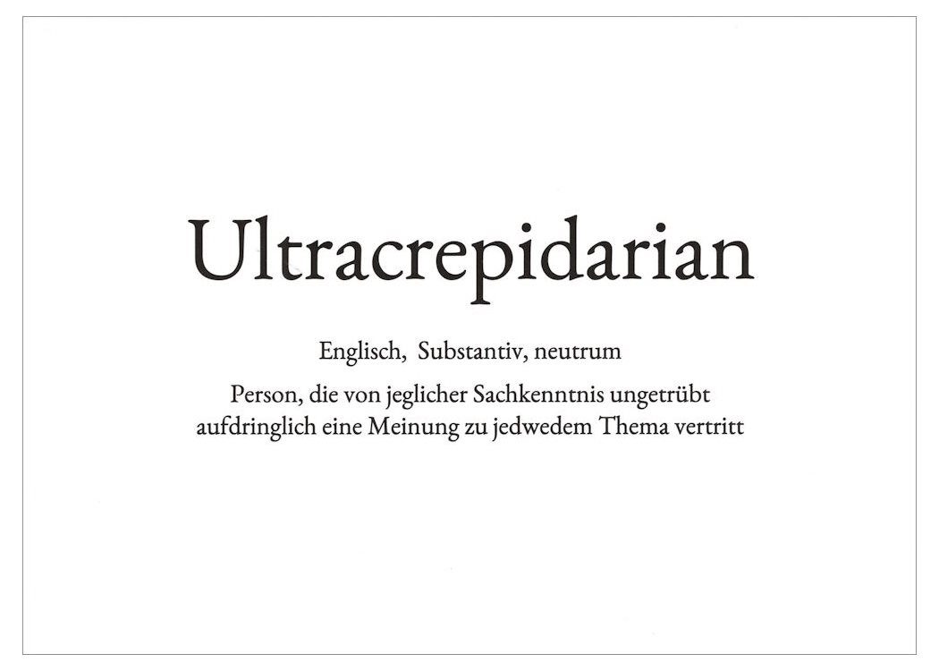 Wortschatz-Postkarte "Ultracrepidarian"Englisch, Substantiv, neutrum