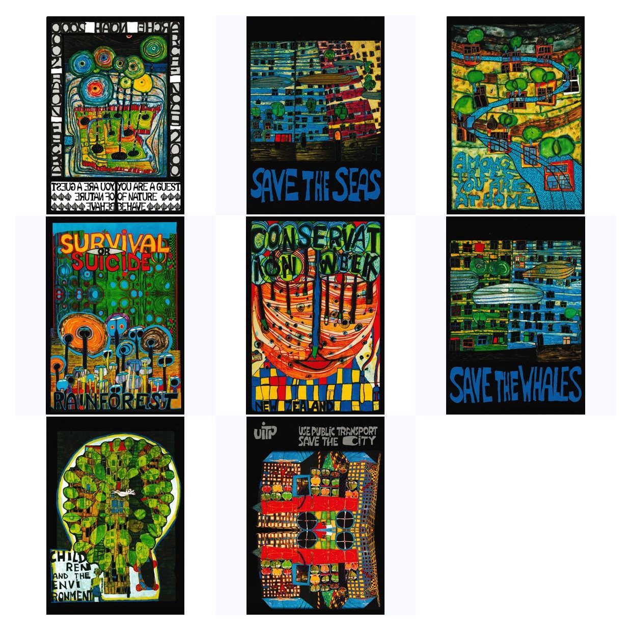 Attraktives Friedensreich-Hundertwasser-Set, bestehend aus 8 Kunstkarten unseres Hundertwasser-Менюs.