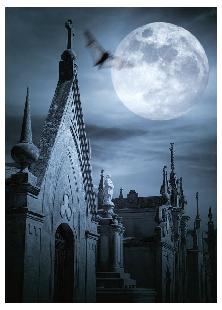 Postkarte "Mystic and Gothic: Friedhof bei Nacht"
