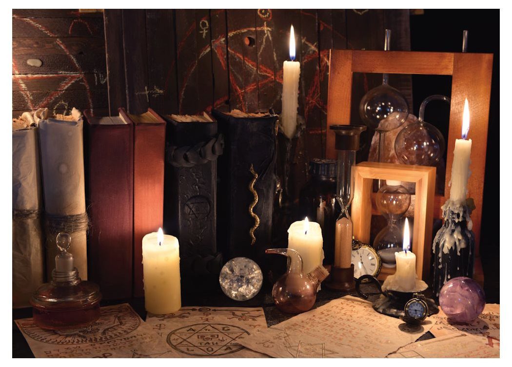 Postkarte "Mystic and Gothic: Stillleben mit magischen Gegenständen und Kerzen"