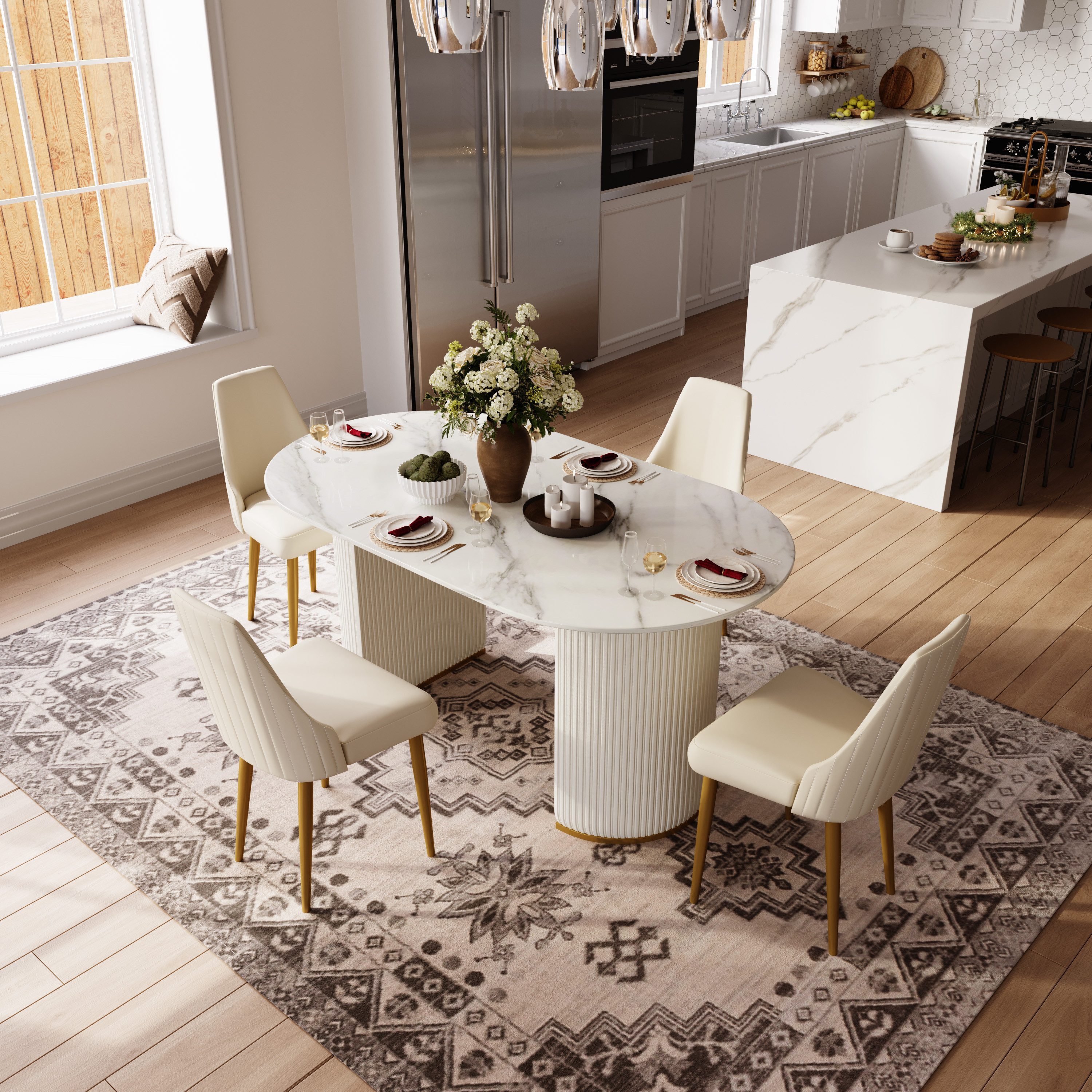 Dieser ovale Sinterstein-Esstisch vereint italienische Ästhetik (römische Säulen) mit moderner Funktionalität. Verfügbar in 4 Größen – perfekt für 4-10 Personen!
