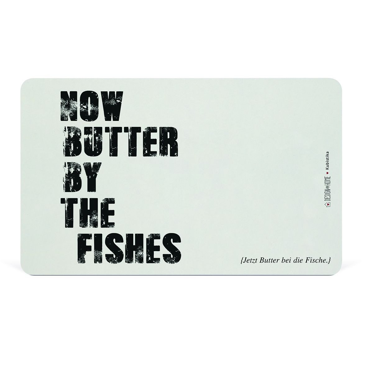 Der augenzwinkernde Spruch „Now Butter by the Fishes“ bringt Spaß auf den Tisch und sorgt für Gesprächsstoff.
