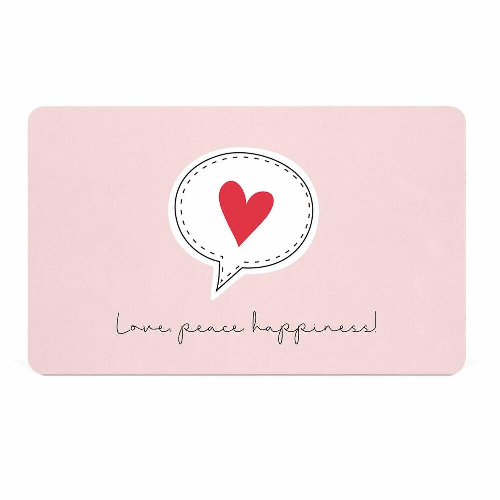Lieferumfang | 1 PPD Love, peace, happiness D@H Tray, Frühstücksbrettchen, Brettchen, Frühstück, Resopal, Weiß / Schwarz, 14.3 x 23.3 cm, 586002072 |