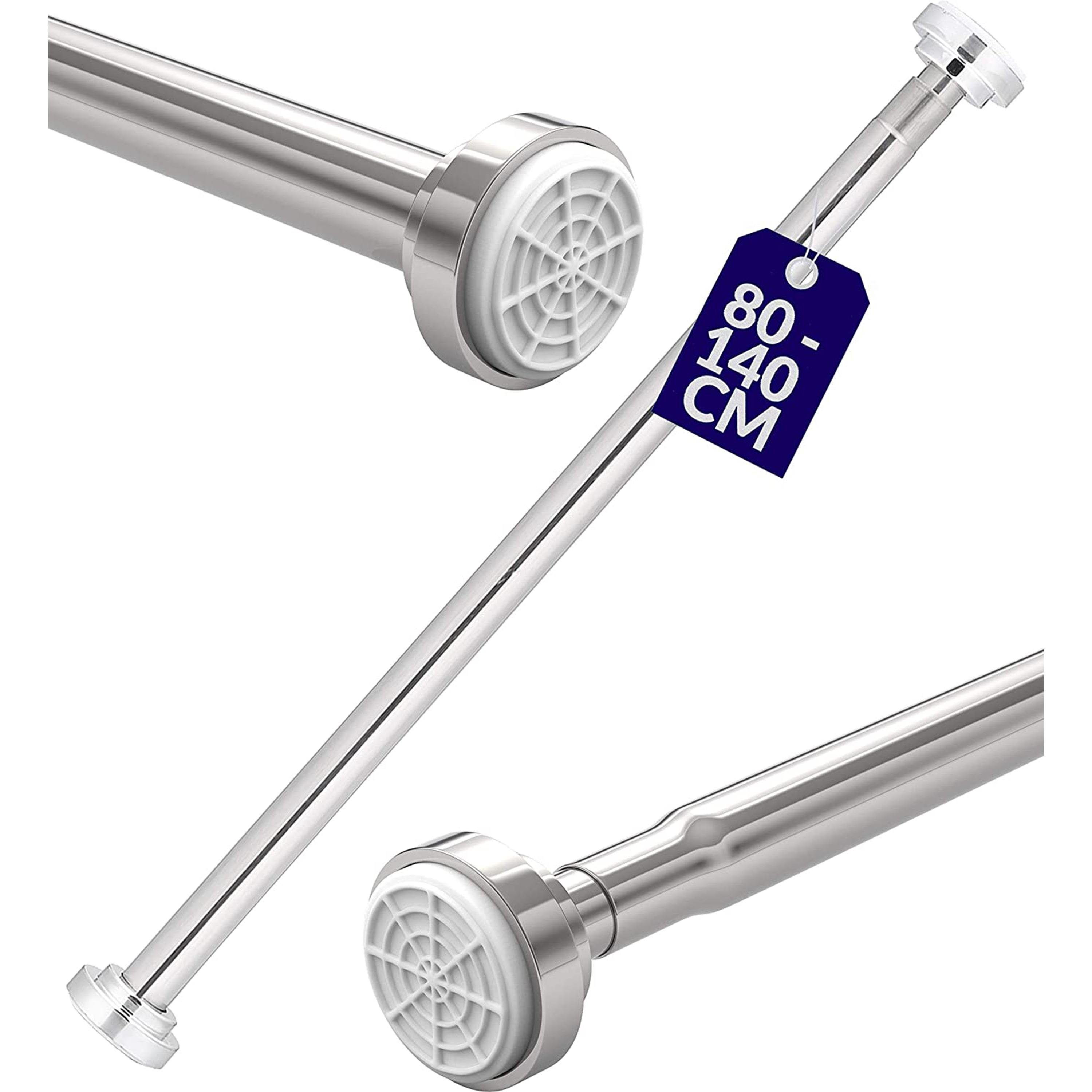 Die Vorhangstange passt in jedes Badezimmer. Die Длина der Duschstange lässt sich beliebig von 80 bis 140 cm ausziehen.