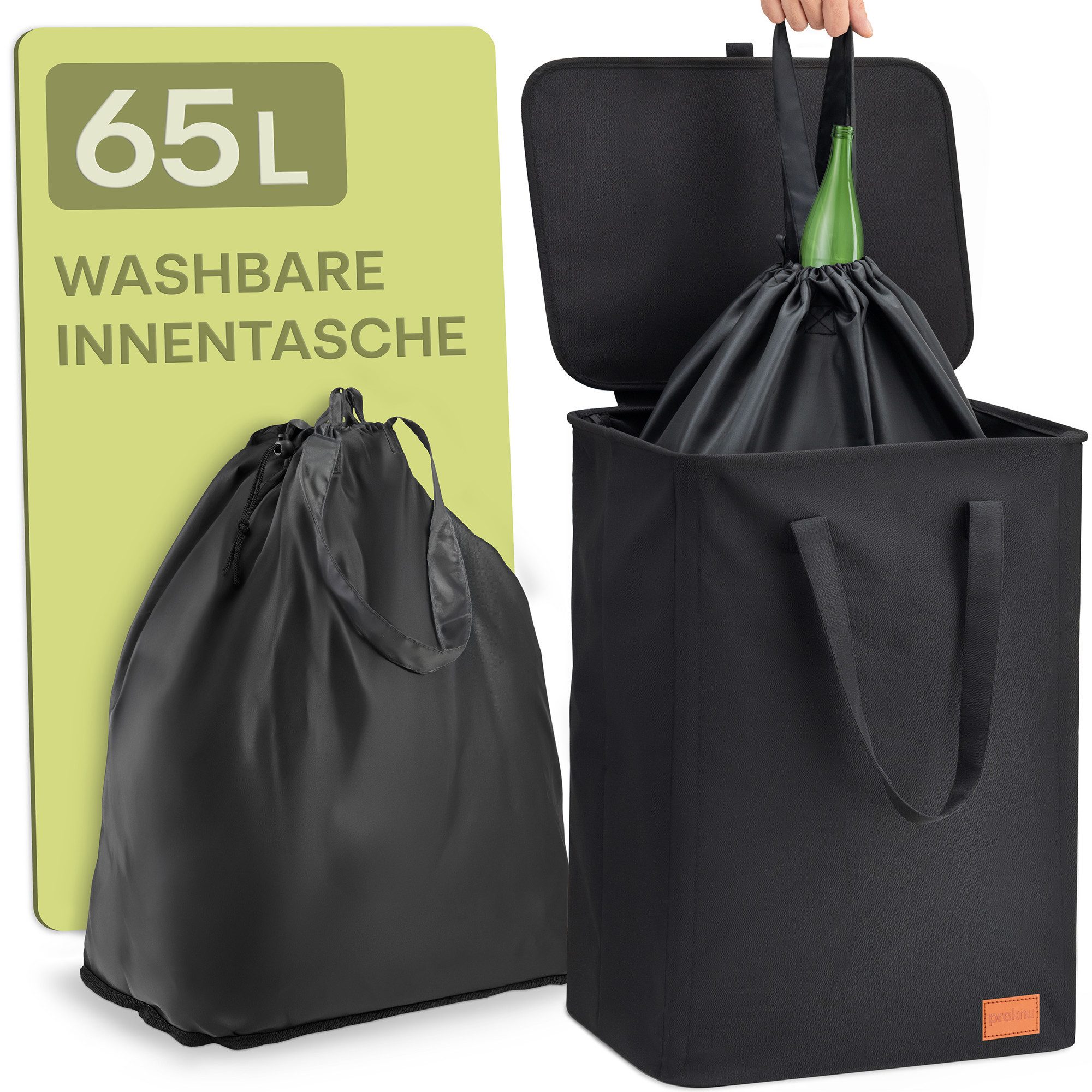 Praknu 65L Pfandflaschen Sammelbehälter Klein – Flaschensammler für Leergut & Altglas – Wasserdichtes, Robustes Oxford-Gewebe – Mit Tragetasche, Kordelzug & Doppelgriffen