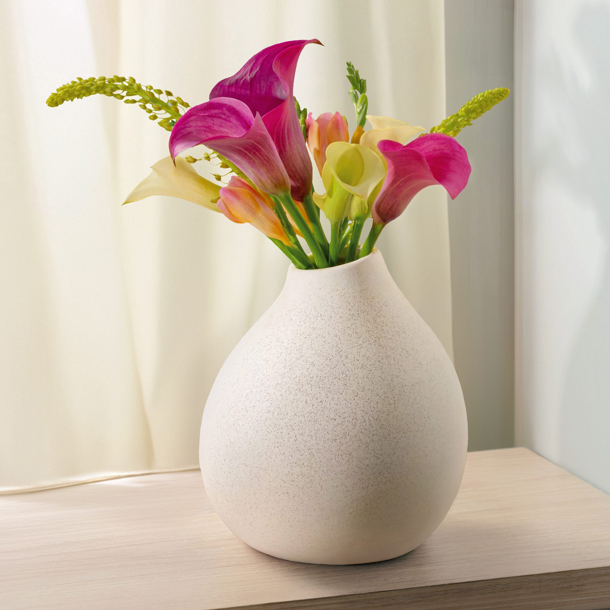 • BAUCHIGE FORM & SANDTEXTUR: Die bauchige Form und die sandige Textur machen die Vase zum Blickfang und verleihen eine besondere Haptik.