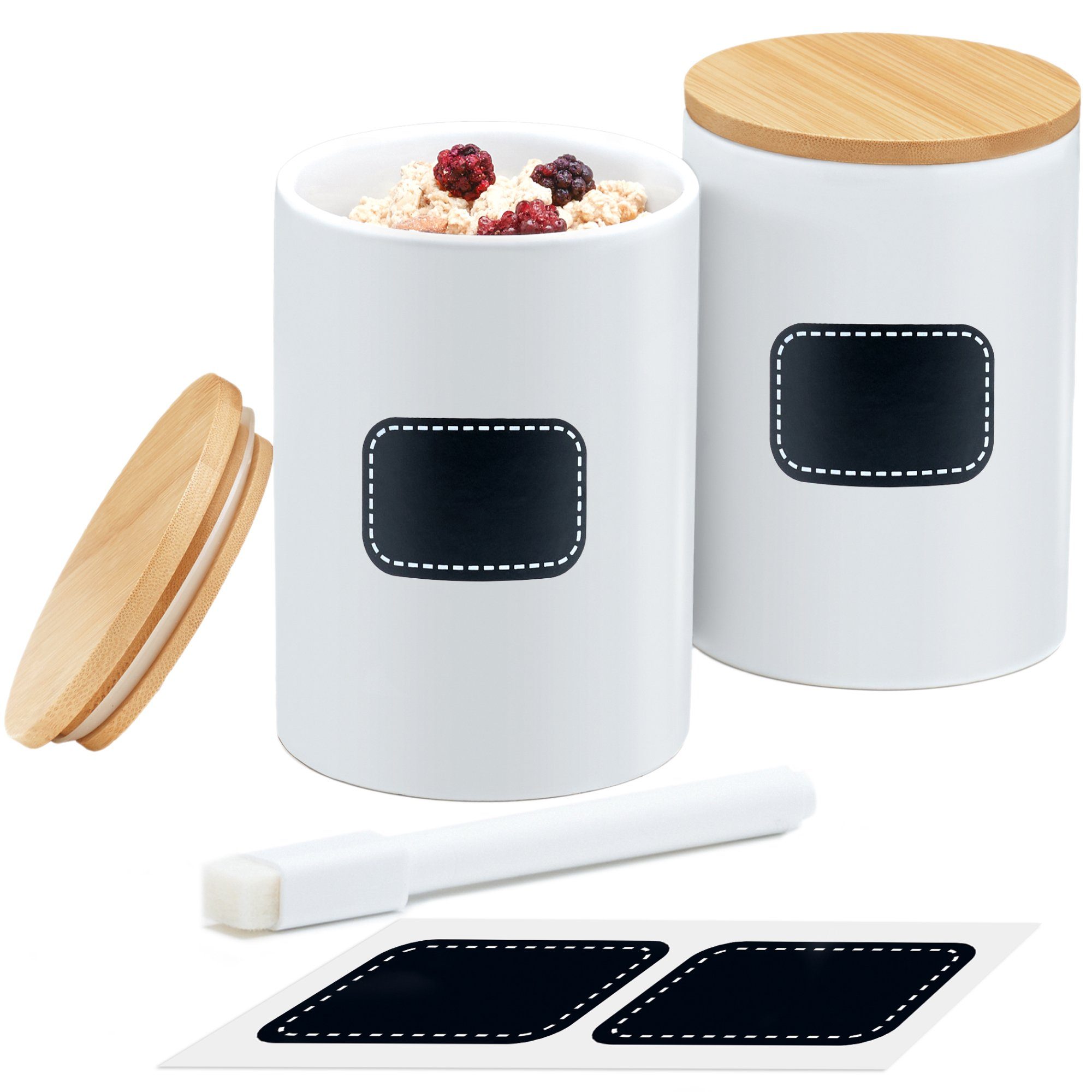 2er Set Keramik Vorratsdosen mit jeweils 2 Deckel, Etiketten und Stift