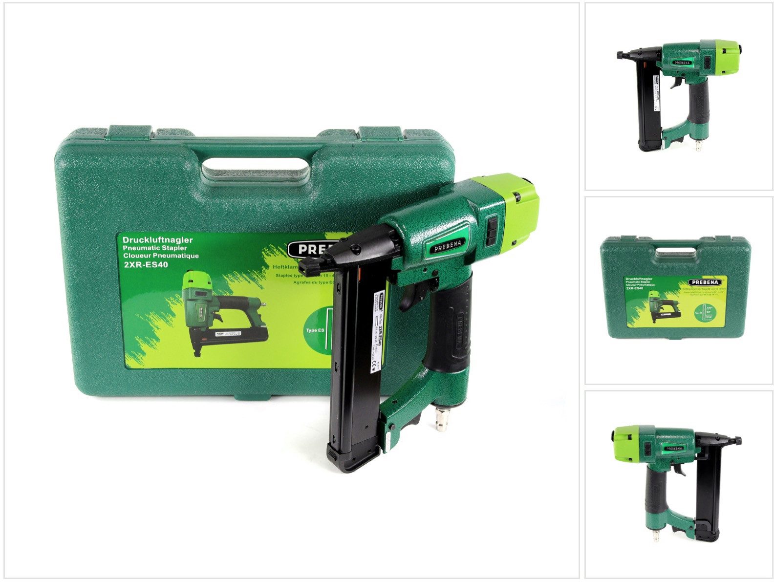 Dieses praktische Druckluft Klammergerät der Marke Prebena ist vielseitige einsetzbar. Man kann es für Panelle, Profilbretter, Glattkanbretter, Holzschindeln, Möbelrückwände Unterkonstruktionen und vieles mehr verwernden. Впередhin überzeugt das Gerät mit seinem geringen Gewicht für optimalen Bedienungskomfort, einem anwenderfreundlichem Auslösehebel, mit einem hochwertige Unterladermagazin für schnelles Nachladen und einem ergonomischen Handgriff mit Antirutschbelag. Das Druckluft Klammergerät eignet sich für Heftklammern des Type ES.