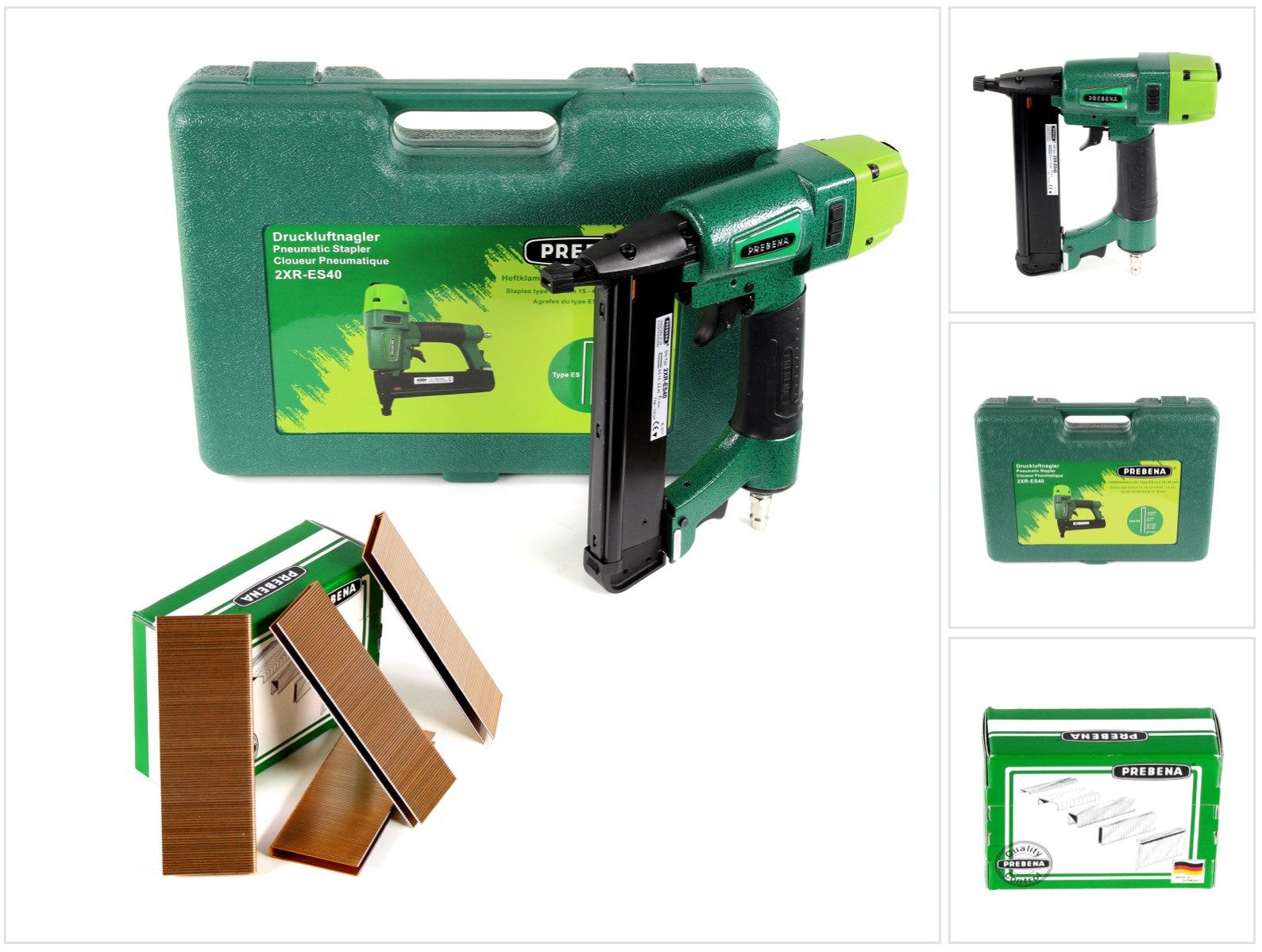 Dieses praktische Druckluft Klammergerät der Marke Prebena ist vielseitige einsetzbar. Man kann es für Panelle, Profilbretter, Glattkanbretter, Holzschindeln, Möbelrückwände Unterkonstruktionen und vieles mehr verwernden. Впередhin überzeugt das Gerät mit seinem geringen Gewicht für optimalen Bedienungskomfort, einem anwenderfreundlichem Auslösehebel, mit einem hochwertige Unterladermagazin für schnelles Nachladen und einem ergonomischen Handgriff mit Antirutschbelag. Das Druckluft Klammergerät eignet sich für Heftklammern des Type ES.