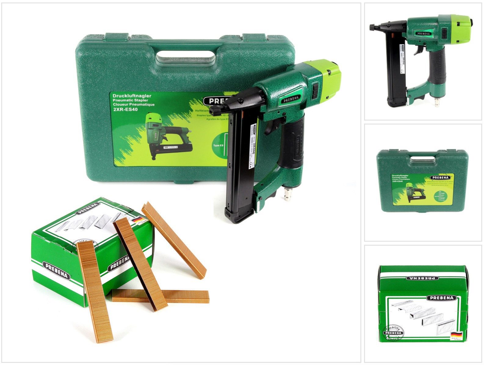 Dieses praktische Druckluft Klammergerät der Marke Prebena ist vielseitige einsetzbar. Man kann es für Panelle, Profilbretter, Glattkanbretter, Holzschindeln, Möbelrückwände Unterkonstruktionen und vieles mehr verwernden. Впередhin überzeugt das Gerät mit seinem geringen Gewicht für optimalen Bedienungskomfort, einem anwenderfreundlichem Auslösehebel, mit einem hochwertige Unterladermagazin für schnelles Nachladen und einem ergonomischen Handgriff mit Antirutschbelag. Das Druckluft Klammergerät eignet sich für Heftklammern des Type ES.