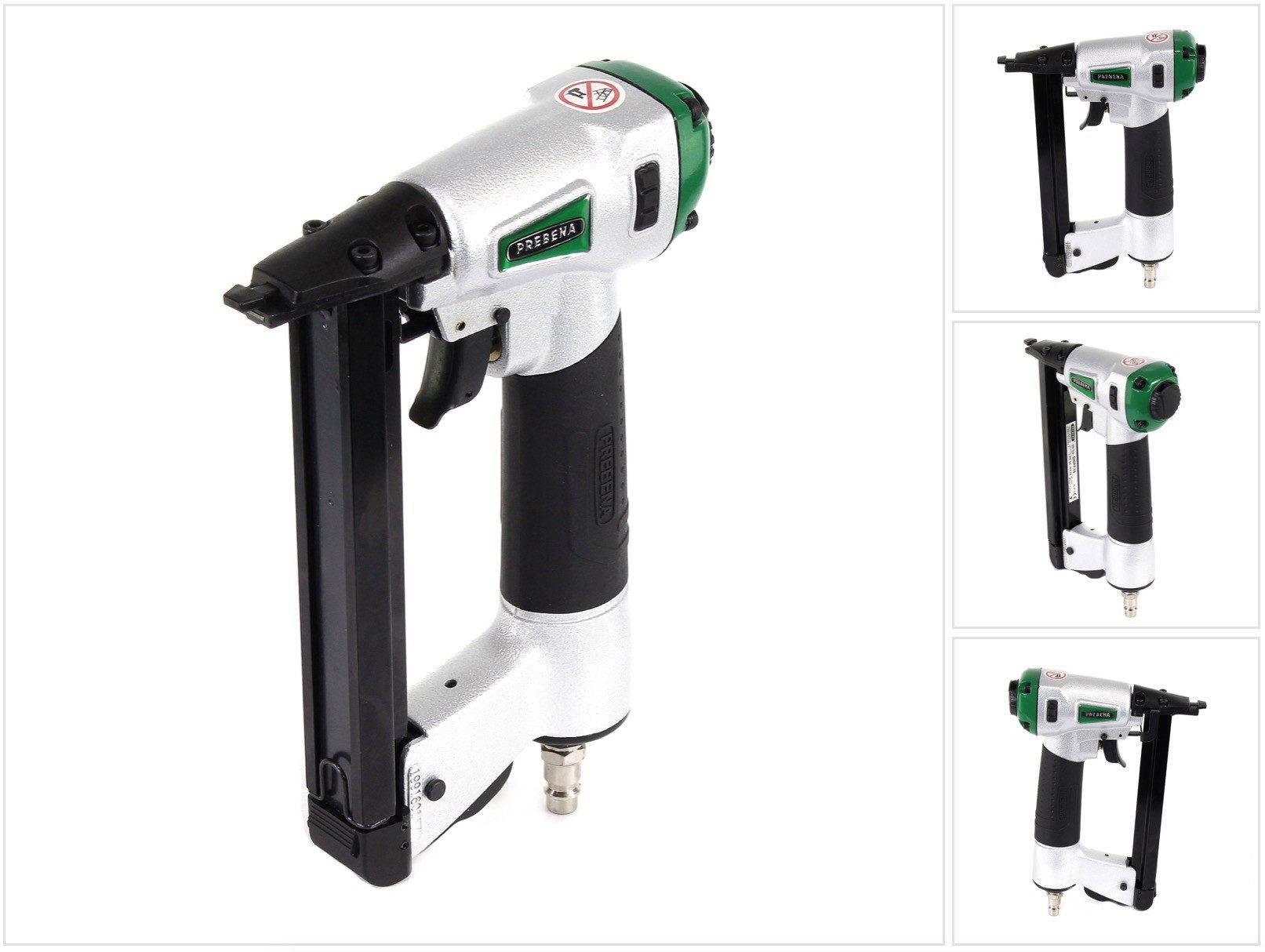 Der Druckluftnagler DNPF16 von Prebena überzeugt durch seine kompakte Abmessungen und sein geringes Gewicht und ist dank Druckluft die leistungsstarke alternative zur Handheftpistole. Durch das Metallgehäuse ist der Nagler extrem stabil und handlich. Der Nagler ist für Heftklammern vom Type PF 06 -16 mm geeignet. Das Gerät verfügt über ein Unterladermagazin, eine Auslösesicherung und einen Geräuschdämpfer. Darüber hinaus können Sie die Abluft beliebig verstellen. Das Gerät eignet sich sehr gut für filigrane Arbeiten, wie z.B der Befestigung von Dachpappe, Folien, Möbelrückwände, Polsterarbeiten etc.
