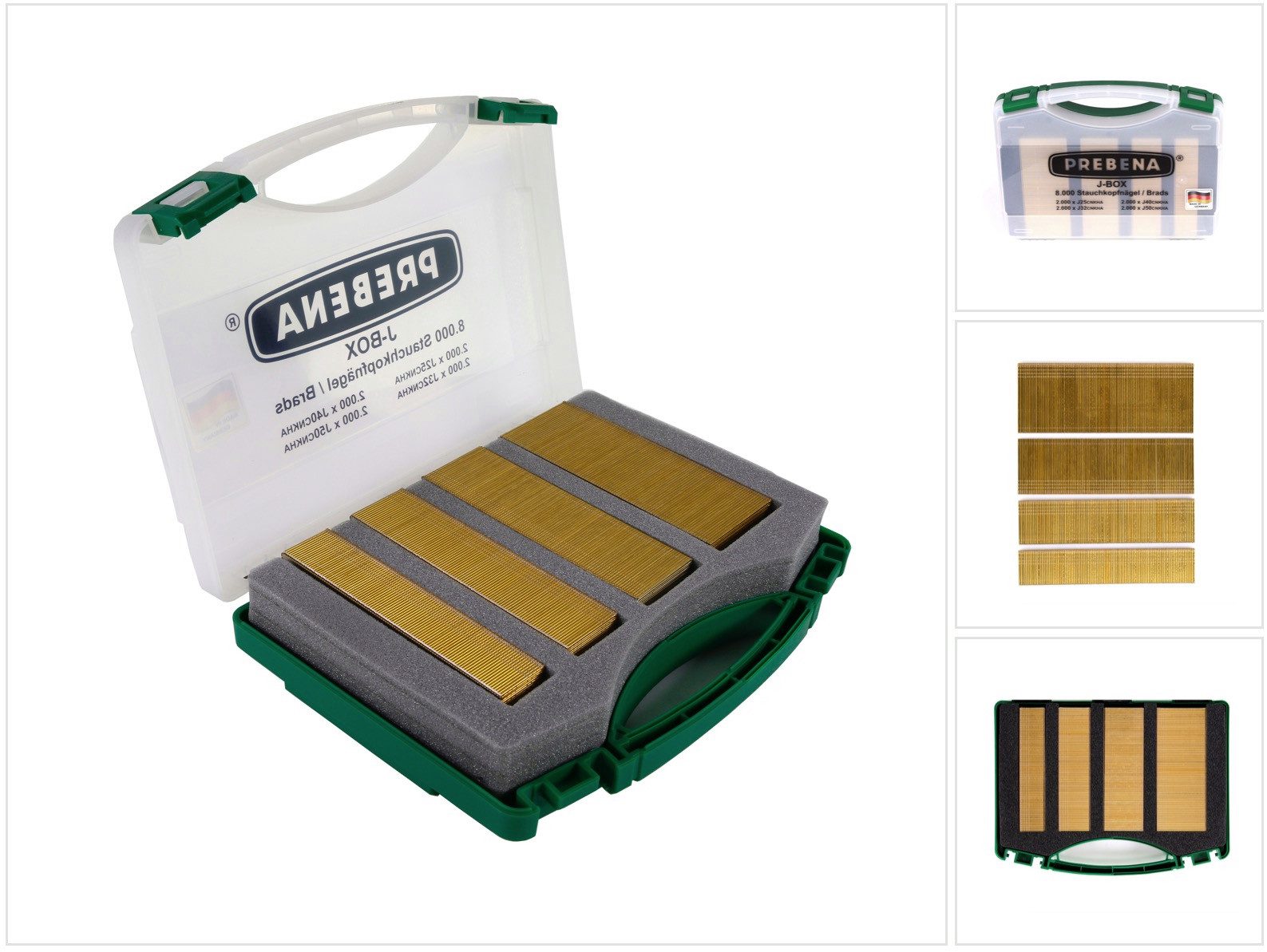 In dieser Prebena J-BOX befinden sich 8.000 Stauchkopfnägel / Brads für den 2XR-J50 Druckluftnagler.