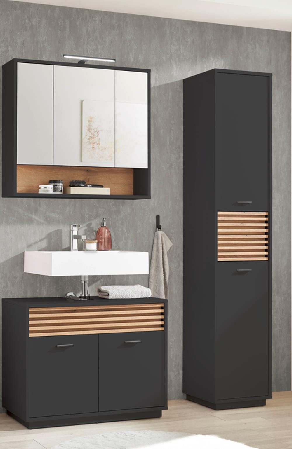 Set beinhaltet | bestehend aus: Spiegelschrank inkl. LED-Beleuchtung 80x70x21 cm,Waschbeckenunterschrank 80x64x40 cm, Hochschrank 38x191x35 cm |