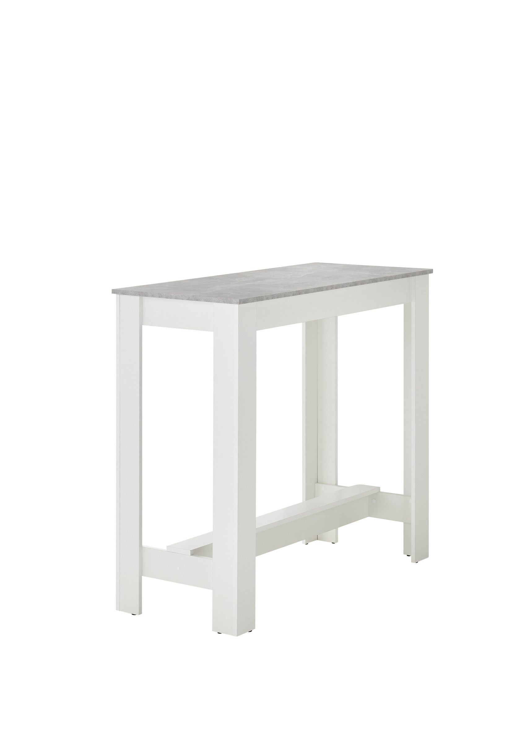 Der Bartisch Modesto ist die perfekte Wahl für moderne und funktionale Wohnräume. Mit seinen kompakten Maßen von 115 cm Breite, 103 cm Höhe und 50 cm Tiefe passt er ideal in kleine Küchen, Essbereiche oder offene Wohnräume, ohne dabei an Stil oder Funktionalität zu verlieren. Die Tischplatte des Bartisches besteht aus hochwertigem Spanmaterial, das mit einer melaminbeschichteten Oberfläche versehen ist. Diese Beschichtung sorgt nicht nur für eine ansprechende Betonoptik in grau, sondern auch für eine besonders pflegeleichte und kratzfeste Oberfläche. So bleibt der Tisch auch bei intensiver Nutzung stets ansprechend und widerstandsfähig. Die Dekorfolie auf der Tischplatte trägt zusätzlich zur Langlebigkeit und Robustheit bei, sodass der Bartisch eine langfristige Investition darstellt. Das Gestell des Modesto-Bartisches ist in einem modernen weißen Farbton gehalten und besteht ebenfalls aus robustem Spanmaterial. Die 4-Fuß-Konstruktion sorgt für eine stabile Standfestigkeit, die den Tisch besonders widerstandsfähig gegenüber alltäglichen Belastungen macht. Das weiße Gestell bildet einen schönen Kontrast zur Betonoptik der Tischplatte und verleiht dem gesamten Tisch ein elegantes, modernes Aussehen. Dank des zerlegten Lieferzustands lässt sich der Bartisch schnell und unkompliziert transportieren und mit wenigen Handgriffen aufbauen. Diese praktische Lösung ist ideal für alle, die auf der Suche nach einem einfachen Möbelstück sind, das sich problemlos in ihren Raum integrieren lässt. Ob als stylischer Stehtisch für das Frühstück oder den geselligen Abend, als kompakter Esstisch für kleinere Räume oder einfach als funktionales Möbelstück im Wohnbereich – der Bartisch Modesto ist vielseitig einsetzbar und bringt sowohl moderne Eleganz als auch praktische Funktionalität in jedes Zuhause. Die perfekte Wahl für alle, die ein robustes, modernes Möbelstück suchen, das sich in verschiedene Raumkonzepte einfügt und sowohl optisch als auch funktional überzeugt.