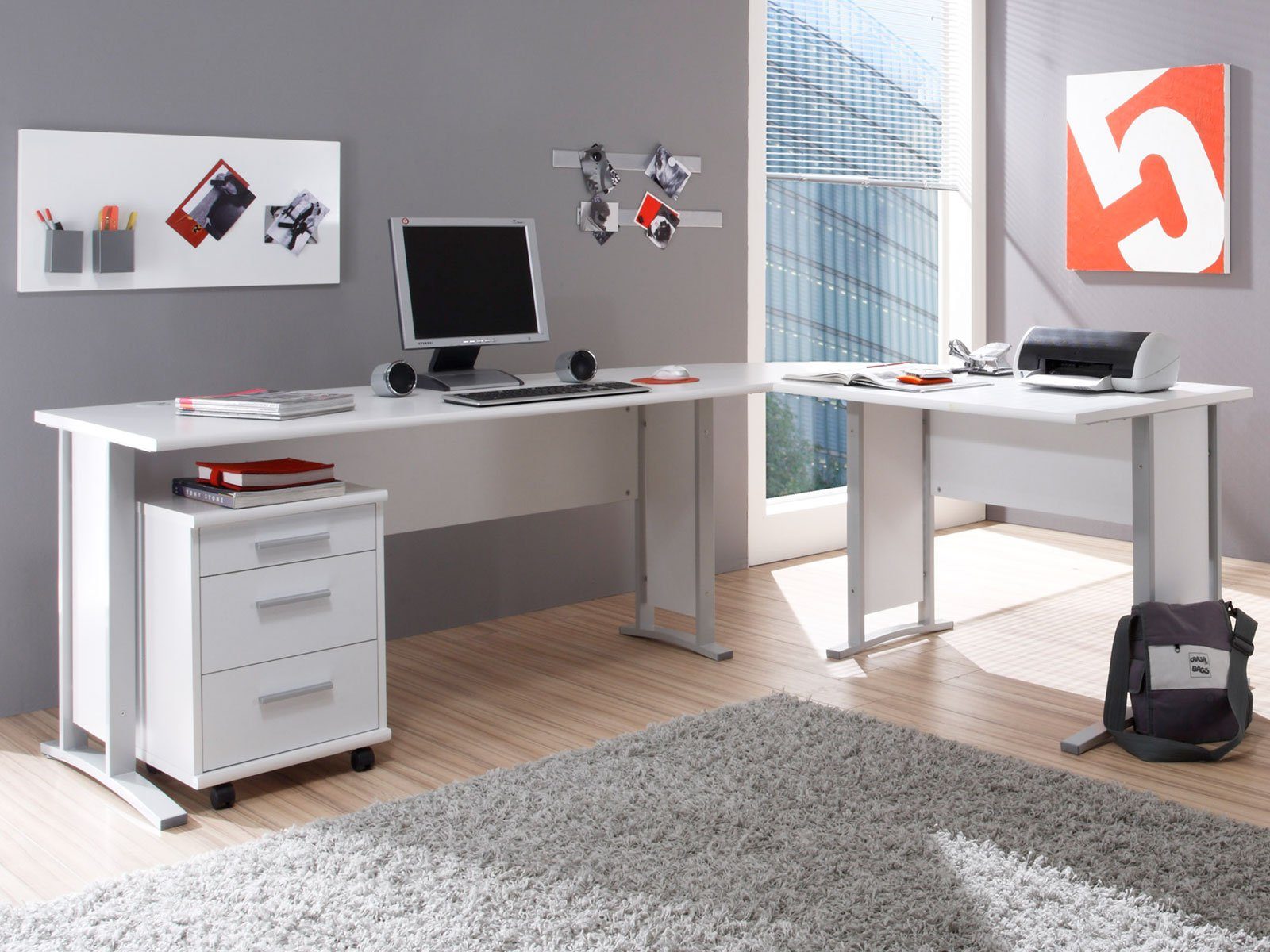 Lieferumfang | Eckschreibtisch + Rollcontainer ohne Dekoration |
