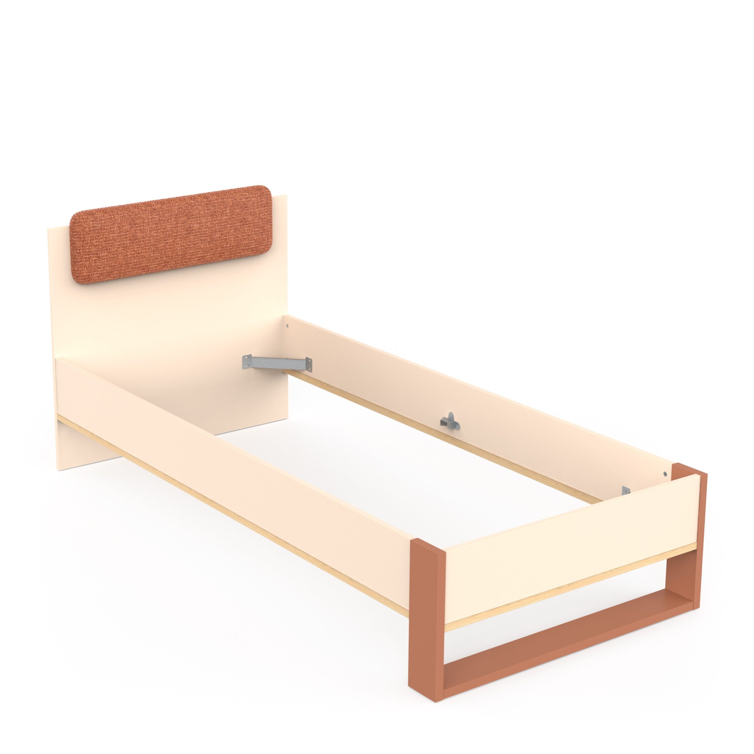 Hergestellt aus melaminharzbeschichteter Spanplatte, bietet das Bett eine pflegeleichte und widerstandsfähige Oberfläche, die vor Kratzern und Abnutzung schützt.