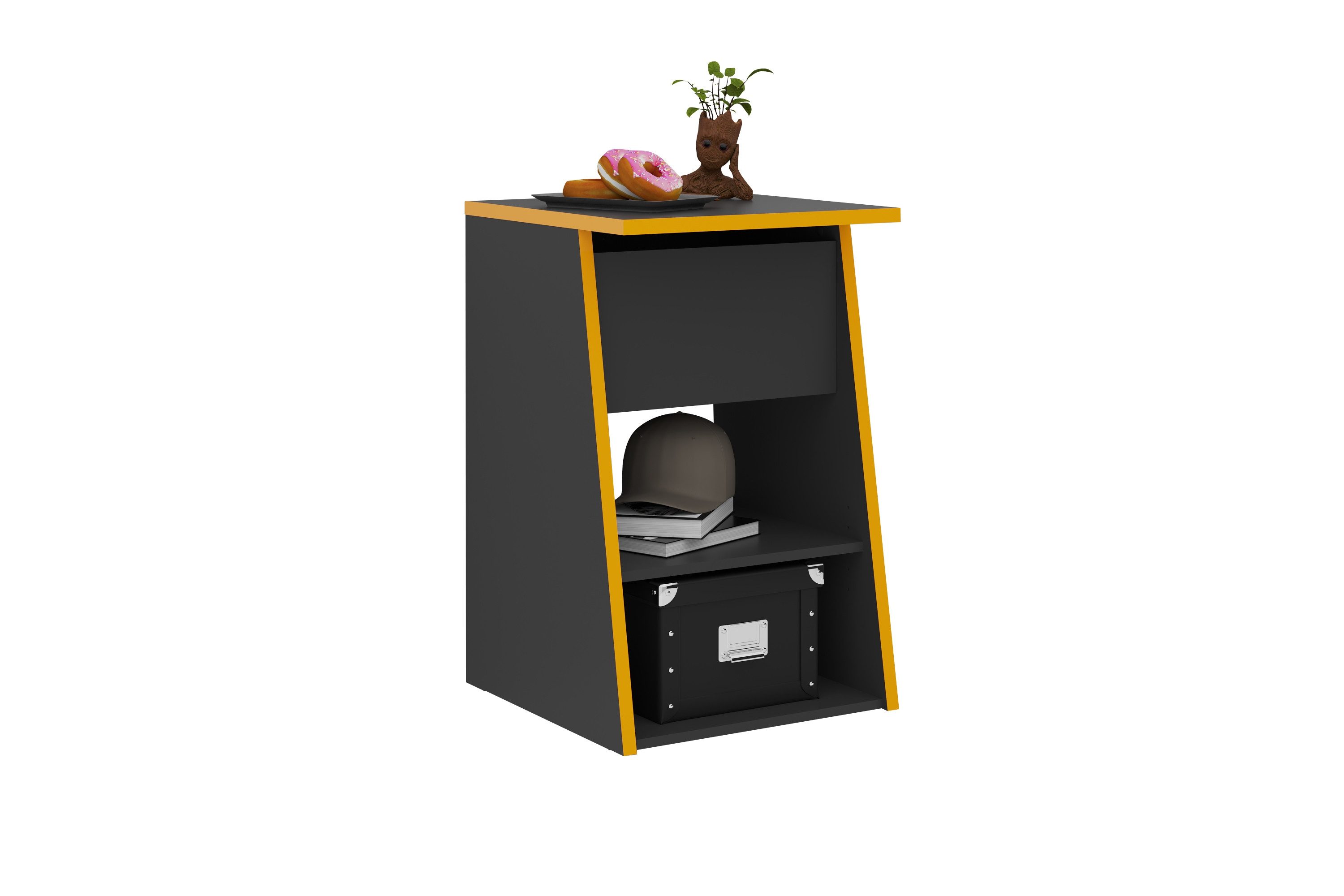 Praktisch und funktional: Der Tisch verfügt über grifflose Öffnung, ein Innenfach, einen Einlegeboden und weiße Kunststoff-Nagelgleiter für sicheren Stand und schonenden Bodenkonta