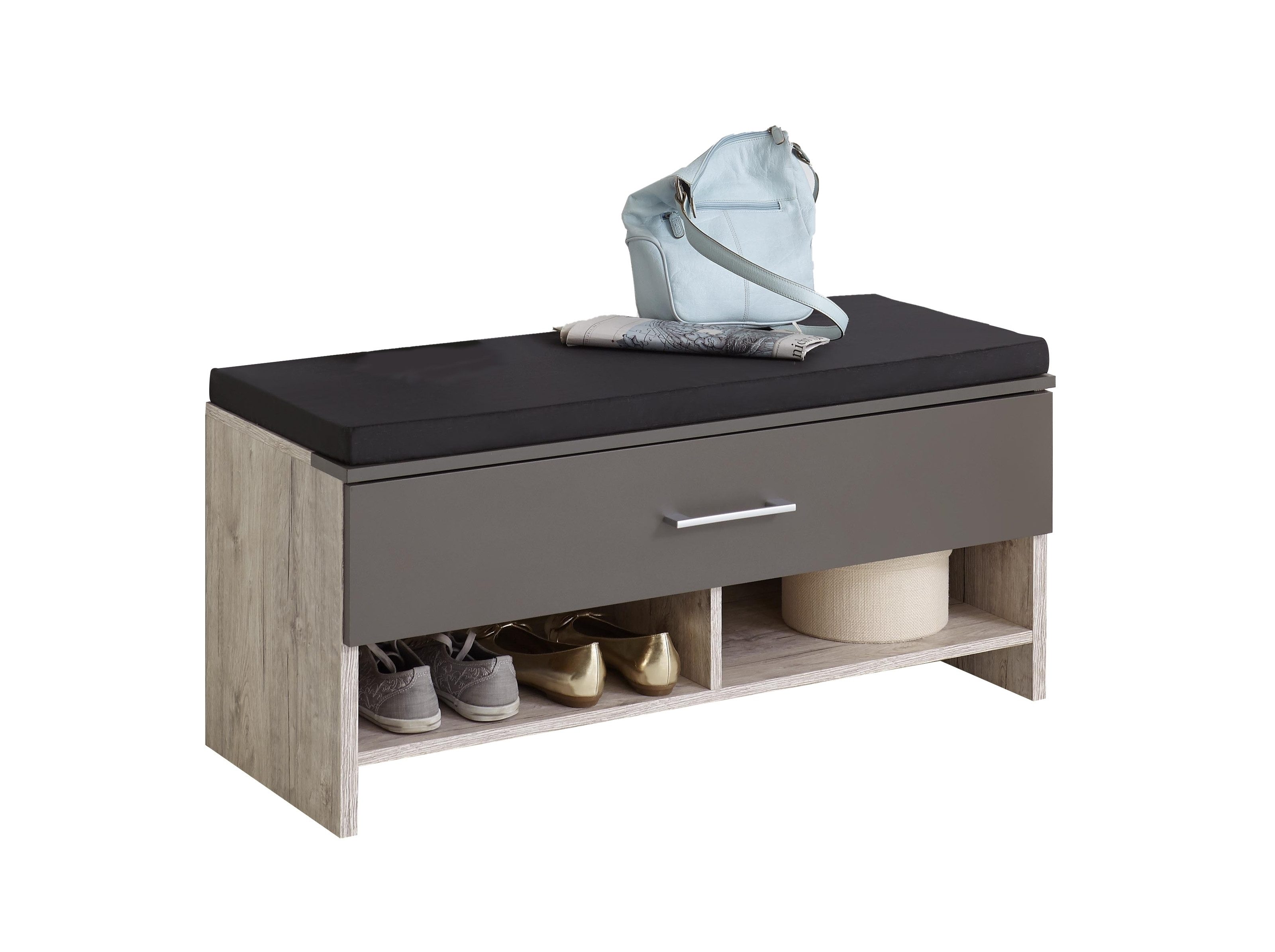 Mit einer Schublade und zwei Innenfächern bietet die Garderobe ALAN 4 optimalen Stauraum. Die melaminharzbeschichtete Spanplatte sorgt für eine pflegeleichte und robuste Oberfläche
