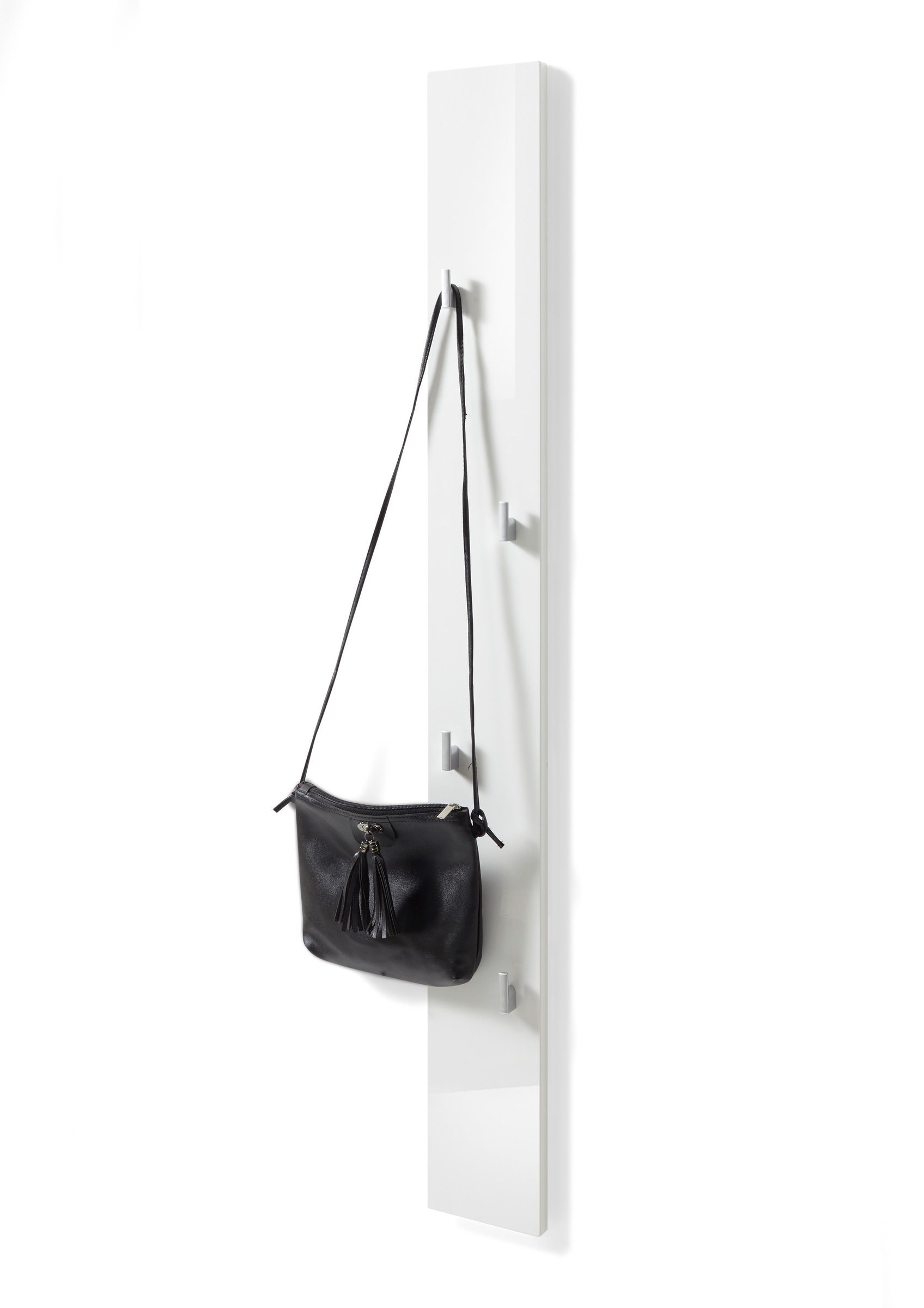 Elegantes Design: Die weiße Hochglanz Dekorfolie verleiht der Garderobenleiste eine glänzende und moderne Ausstrahlung.
