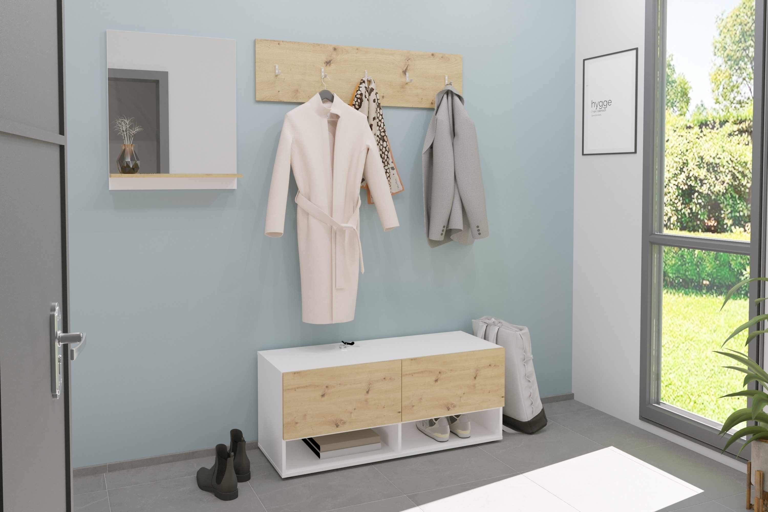 Stilvolles Artisan Eiche Dekor: Das moderne Design des Garderobenpaneels in Artisan Eiche Dekor fügt sich nahtlos in jedes Interieur ein und verleiht Ihrem Eingangsbereich eine ele