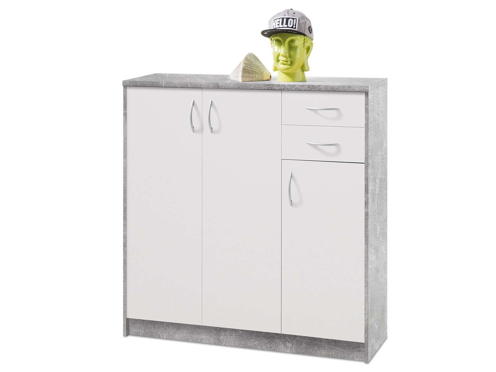 Die Kommode "Olli VI" ist hier mit einem Korpus in moderner Beton Nachbildung gehalten, welche stilsicher mit einer Front in klarem Weiß kombiniert wird. Dank dieser Farbgebung wird der Kommode eine frische und vor allem freundliche Ausstrahlung verliehen. Die Betonnachbildung ist qualitativ sehr hochwertig mit täuschend echter Struktur.