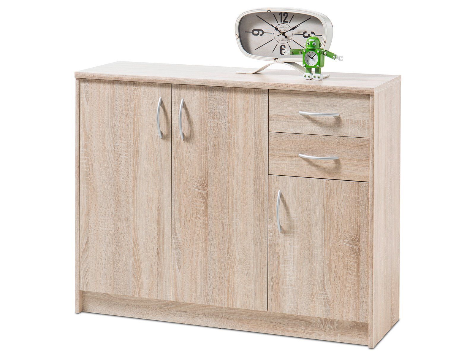 Die Kommode "Olli V" gefällt dank ihrer komfortablen Höhe auf angenehm kompakter Grundfläche. Hinter 3 Holztüren, sowie in 2 Schubkästen findet sich reichlich Platz um all die Dinge sauber und ordentlich verräumen zu können, die eben so in die Kommode gehören sollen.