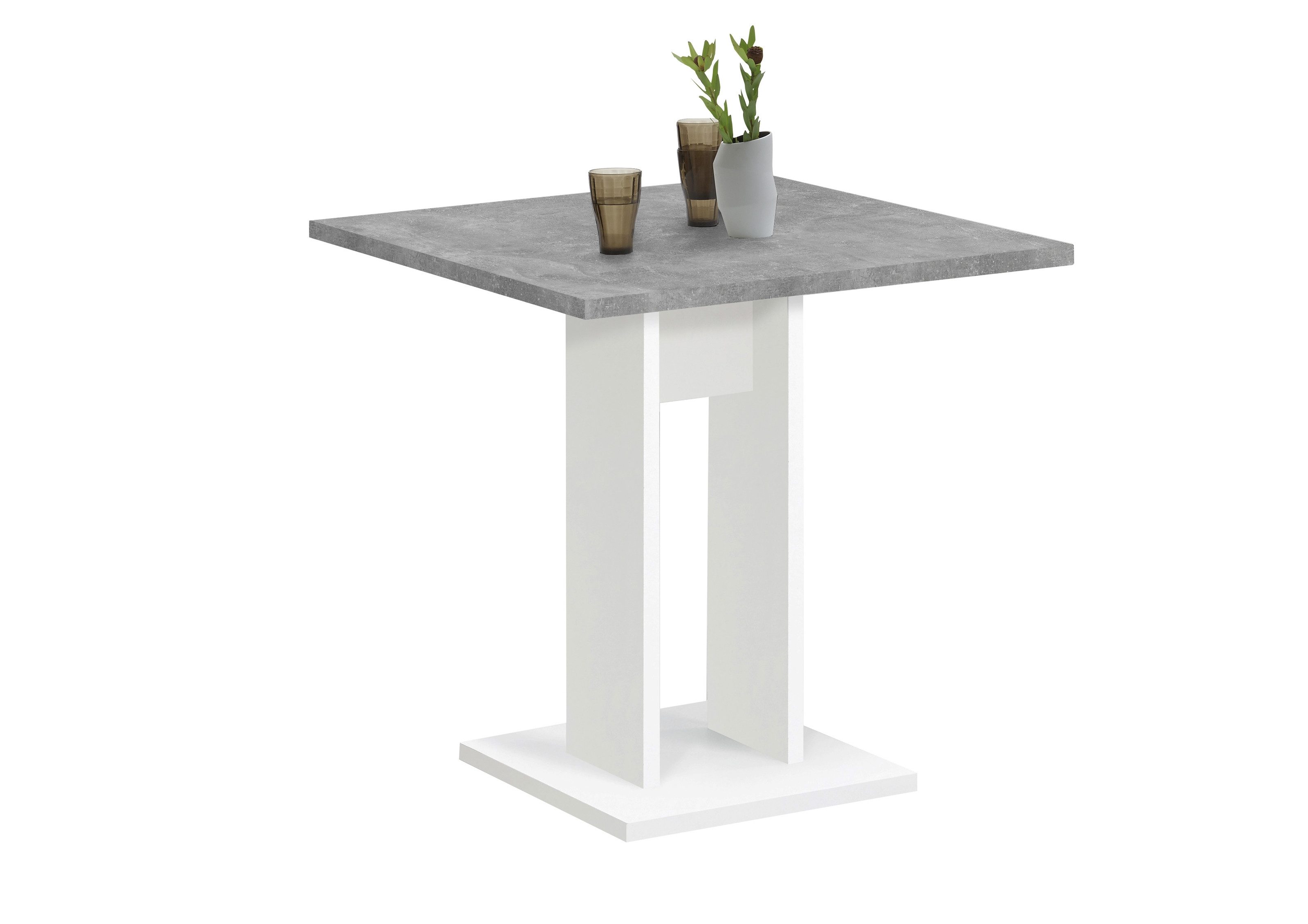 Der Säulen-Esstisch BANDOL 1 vereint modernes Design mit funktionaler Eleganz. Mit seinen kompakten Maßen von 70x77,5x70 cm (B/H/T) bietet er Platz für gesellige Mahlzeiten in Ihrem Wohnraum. Hergestellt aus hochwertiger Spanplatte, ist er in einem zeitgemäßen weiß-Beton LA Design gehalten, das sich harmonisch in unterschiedliche Einrichtungsstile einfügt. Die eckigen Füße aus melaminharzbeschichteter Spanplatte verleihen dem Tisch Stabilität und ein ansprechendes Äußeres. Dieser Esstisch wird zerlegt geliefert und ist mithilfe der einfachen Aufbauhinweise schnell montiert. Keine Wandbefestigung ist erforderlich, da der Tisch auf seine stabilen Füße vertraut. Die PEFC-Zertifizierung garantiert zudem eine umweltbewusste Herstellung. Pflegen Sie den Tisch mit einem Staubtuch oder einem feuchten Lappen, um seine Schönheit dauerhaft zu erhalten. BANDOL 1 ist die ideale Wahl für alle, die Funktionalität und ästhetisches Design schätzen.
