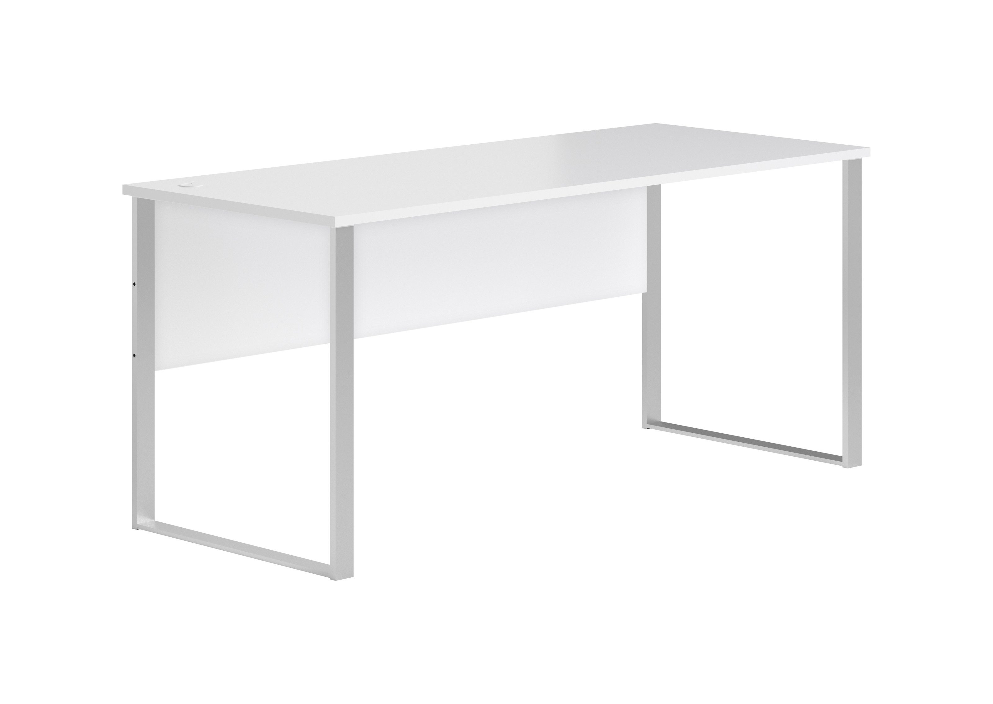 Der Schreibtisch AMANDA kombiniert modernes Design mit Funktionalität. Die Tischplatte in Weiß mit robuster Melaminbeschichtung schafft ein helles und freundliches Ambiente in Ihrem Arbeitsbereich. Das silberne Stahlgestell sorgt für Stabilität und bildet mit seinen U-förmigen Kufen einen ansprechenden Kontrast zur weißen Oberfläche. Mit seiner großzügigen Arbeitsfläche bietet der Schreibtisch ausreichend Platz für Monitor, Drucker und weitere Arbeitsmaterialien, wodurch Sie Ihr Homeoffice effizient und organisiert nutzen können. Die integrierte Kabeldurchführung unterstützt zusätzlich eine aufgeräumte Arbeitsumgebung. Lieferumfang: 1x Schreibtisch 170 x 77 x 73 cm (B/H/T) 1x Montage Material und detaillierte Aufbauanleitung