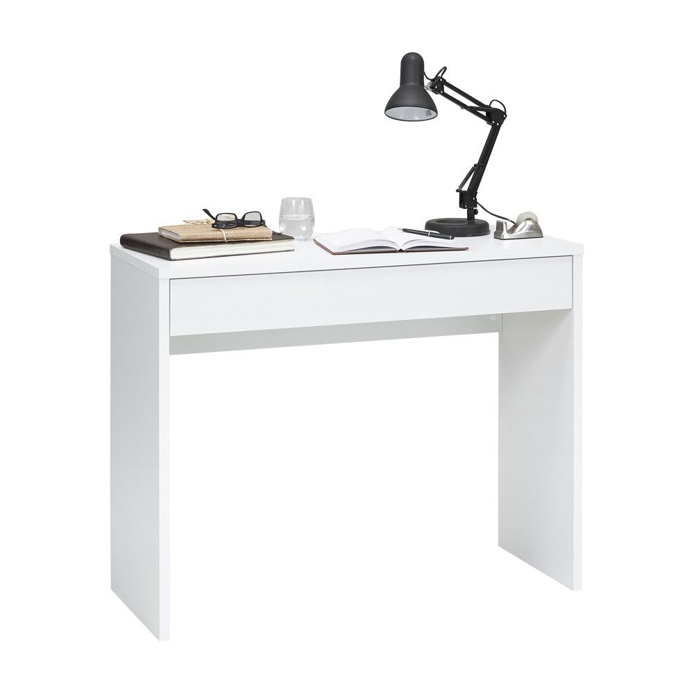 Maße und Design: Der Schreibtisch weiß überzeugt mit Maßen von 100 cm Breite, 80 cm Höhe und 40 cm Tiefe, perfekt für kompakte Büro- und Homeoffice-Ecken.