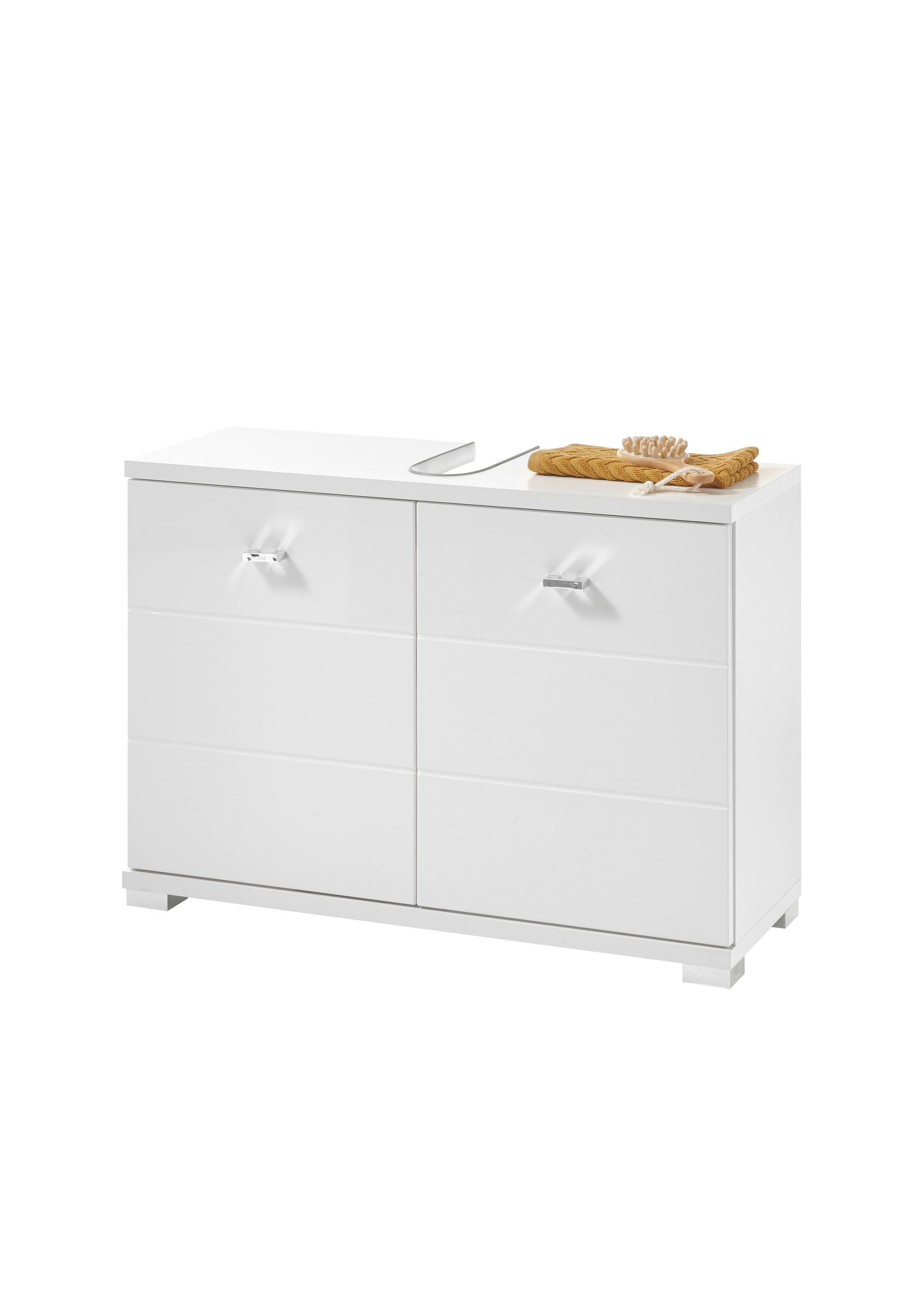 "Peter I" überzeugt nicht nur durch sein attraktives Design, sondern auch durch ordentlich Stauraummöglichkeiten. Hinter 2 Türen findet sich genug Platz, um Badutensilien, Föhn, Putzmittel usw. zu verstauen. Auch eine nicht zu verachtende Ablagefläche - abhängig von der Breite des Waschbeckens - steht auf der Haben-Seite.