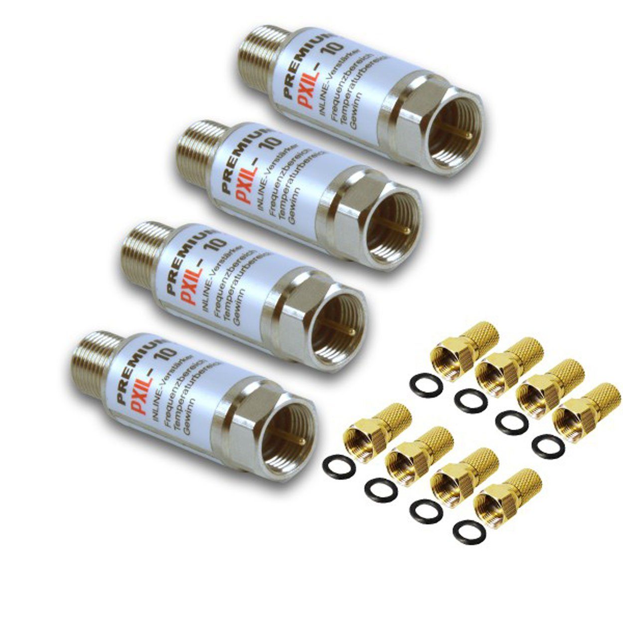 Lieferumfang | 4x Inline Verstärker 20dB SAT DVB-T,8x F-Stecker 7mm |