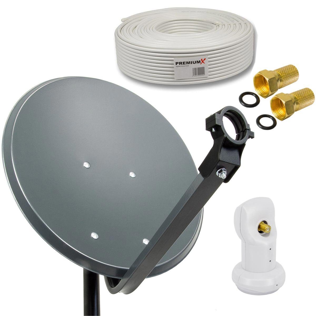 Lieferumfang | 1x PremiumX PXS 45cm Sat Antenne Anthrazit1x PremiumX Single LNB Weiß1x PremiumX 10m Koax Kabel2x F-Stecker |