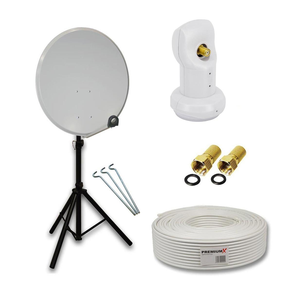 Lieferumfang | 1x PremiumX PXS45 Spiegel mit Zubehör1x PremiumX Single LNB mit Wetterschutz1x PremiumX Dreibein Stativ3x Stahl-Heringe verzinkt1x PremiumX Koaxial Kabel 10m2x F-Stecker mit Dichtring |